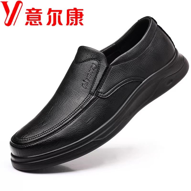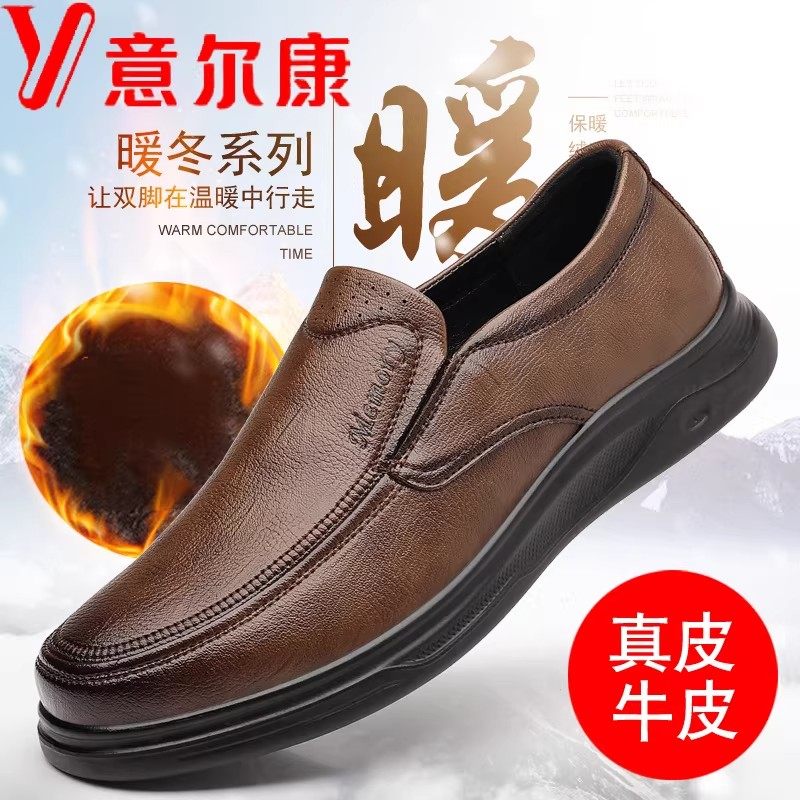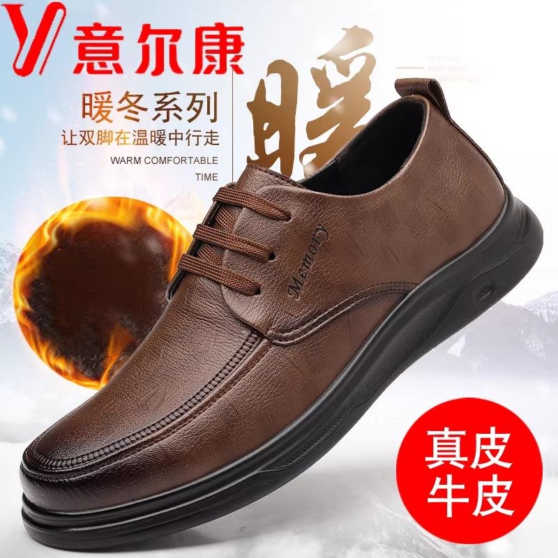 意尔康男鞋秋冬季新款加绒保暖头层牛皮休闲皮鞋男士特大码爸爸鞋