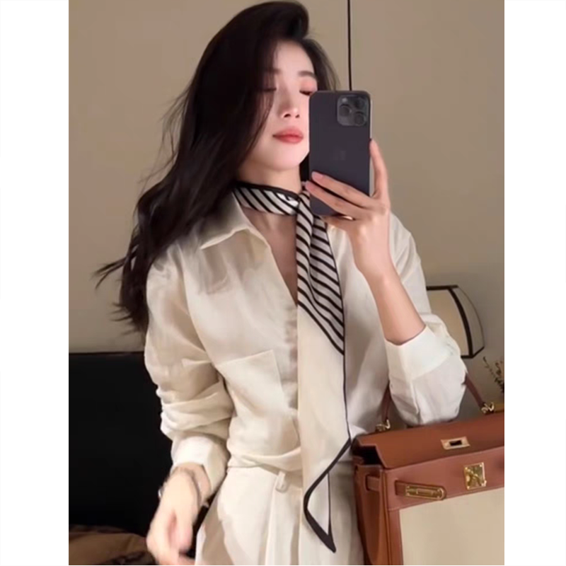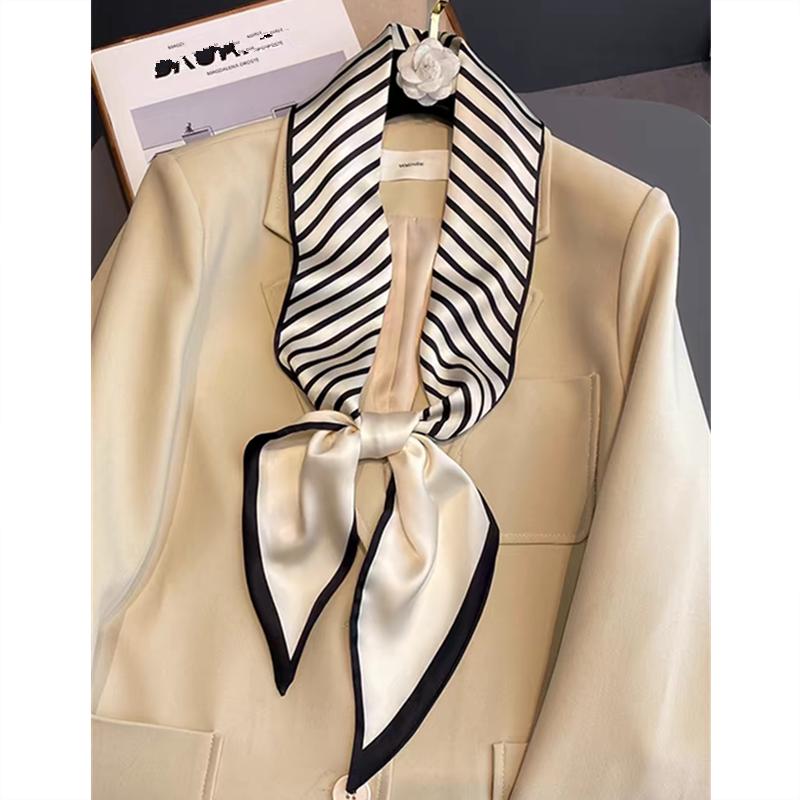 黑白条纹2025新款高级感长条形小丝巾女细窄搭配衬衫夏季飘带绑包