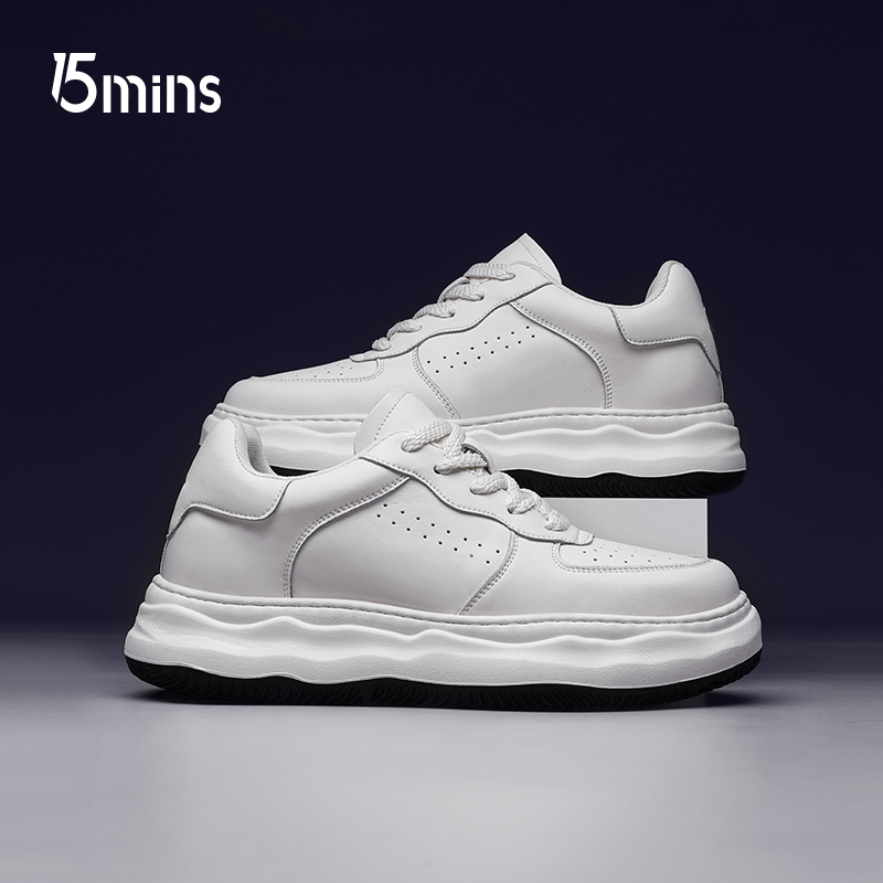 15mins男鞋内增高春季新款真皮熊猫休闲板鞋隐形增高7CM小白鞋男