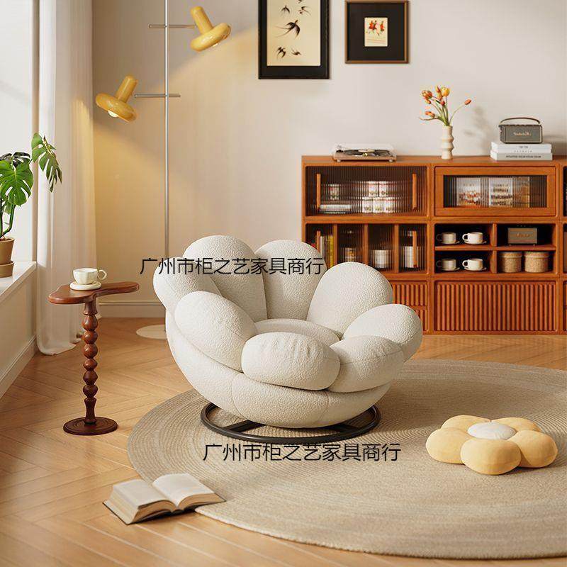 懒沙人花奶瓣花朵网红阳台客厅小户RYU型油风可旋转休发闲小沙发