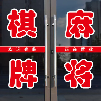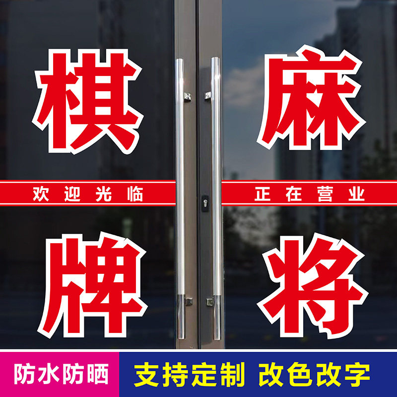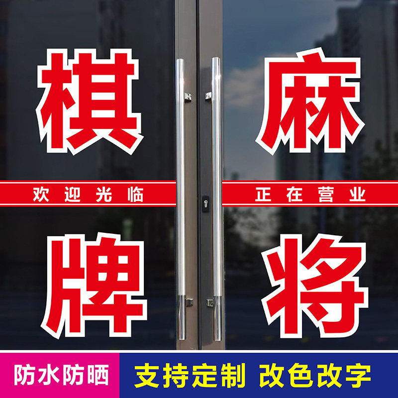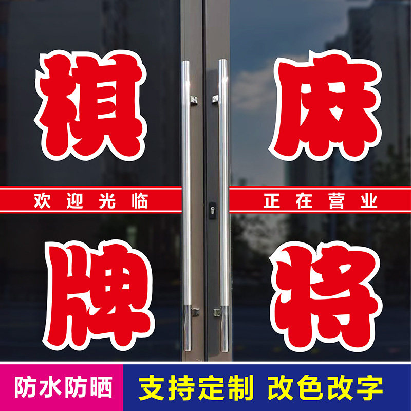 休闲娱乐棋牌麻将桌球台球室橱窗玻璃门广告自粘贴纸内贴文字定做