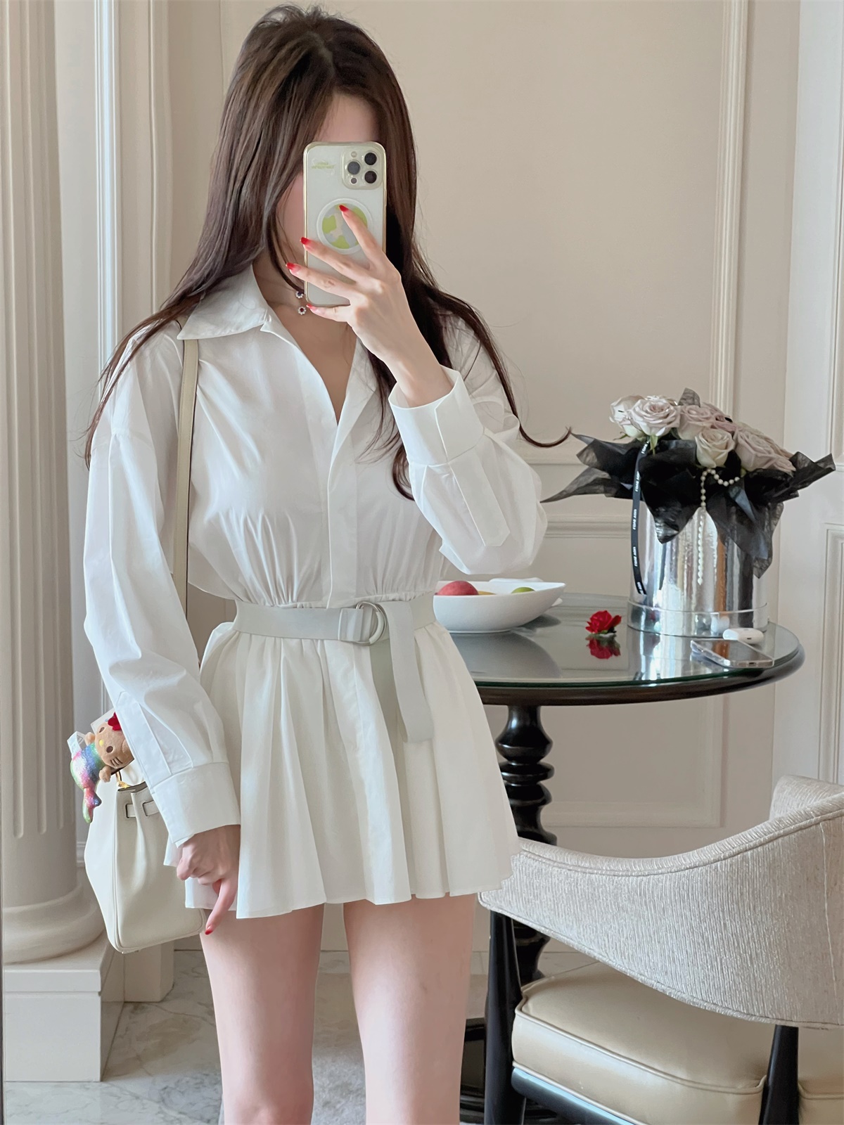 2.18小众衬衫连衣裙酷盐甜系少女感穿搭春季棉质收腰长袖衬衣腰带