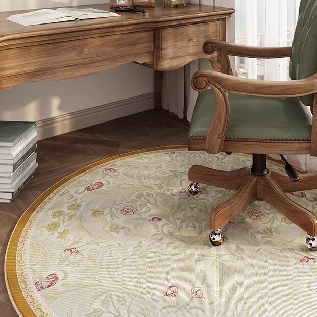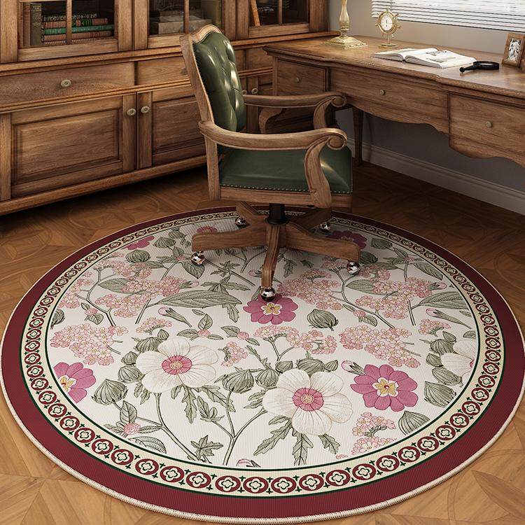 2025新款圆形地毯书桌书房转椅卧室地垫美式复古梳妆台电脑椅子垫