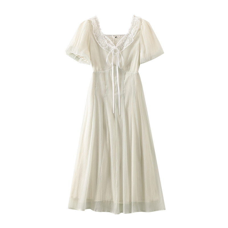 2025春夏新品300斤大码女装长裙270胖mm蕾丝领收腰显瘦连衣裙240