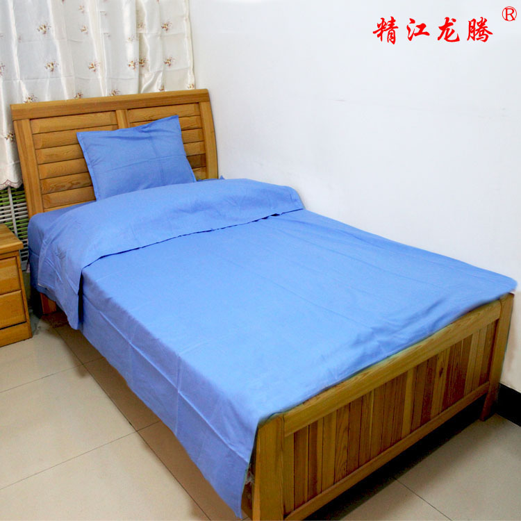 单人宿舍蓝色纯棉床上三件套大学生上下铺湖蓝床单被罩0.9m床全蓝