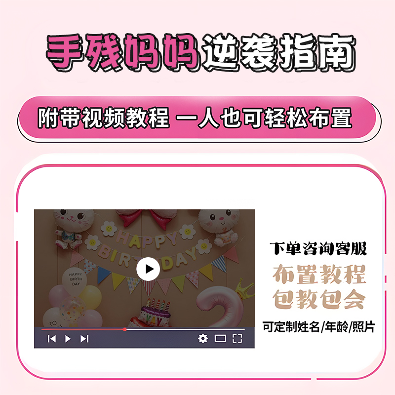 2周岁生日布置女孩兔子气球儿童快乐派对场景装饰氛围感仪式感二