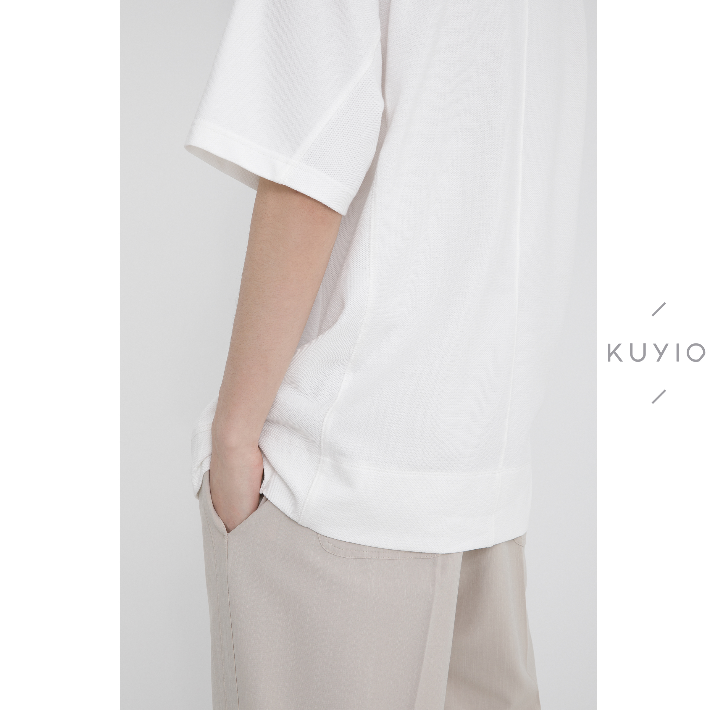 KUYIOU夏/暗纹提花面料 日系基础款落肩圆领棉质宽松短袖T恤男