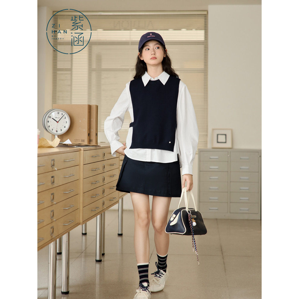 【所有女生直播间】紫涵衬衫马甲套装/背心衬衫套装/芭蕾风短裙