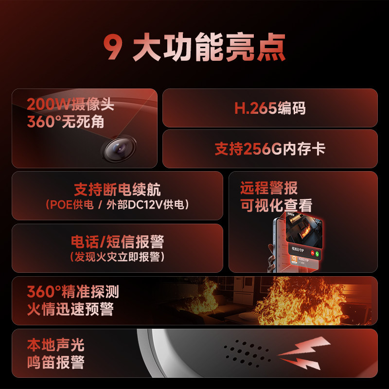 大华消防烟感摄像头室内家用远程网络热成像火灾探测烟雾报警器