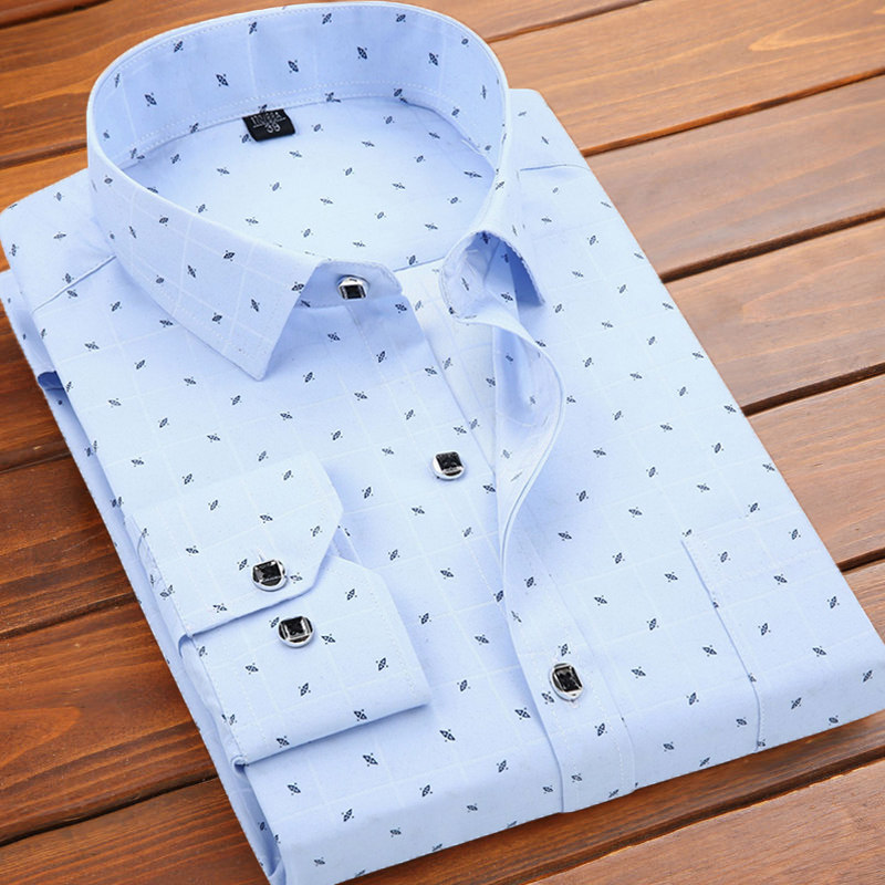 春秋季碎花薄款修身青年长袖衬衫