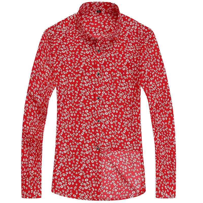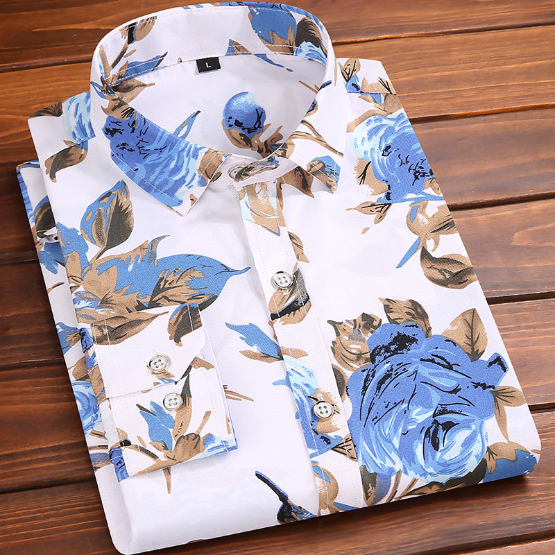 春秋季新款长袖衬衫男碎花韩版薄款修身印花衬衣青年休闲寸衫男装
