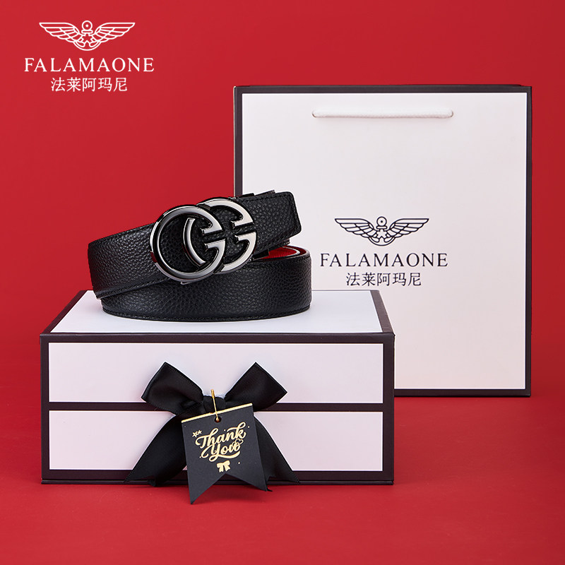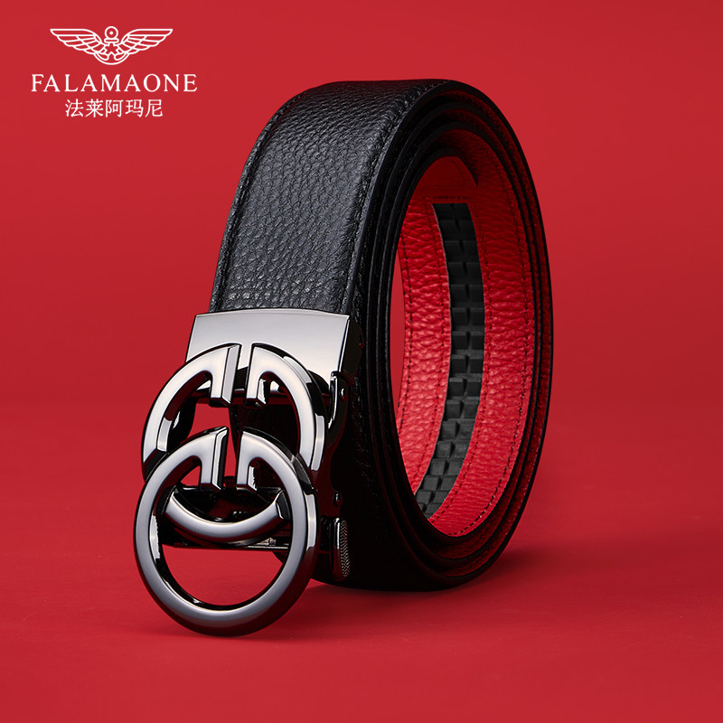 法莱阿玛尼皮带男款2026马年本命年红腰带属马男士真皮裤带年轻人