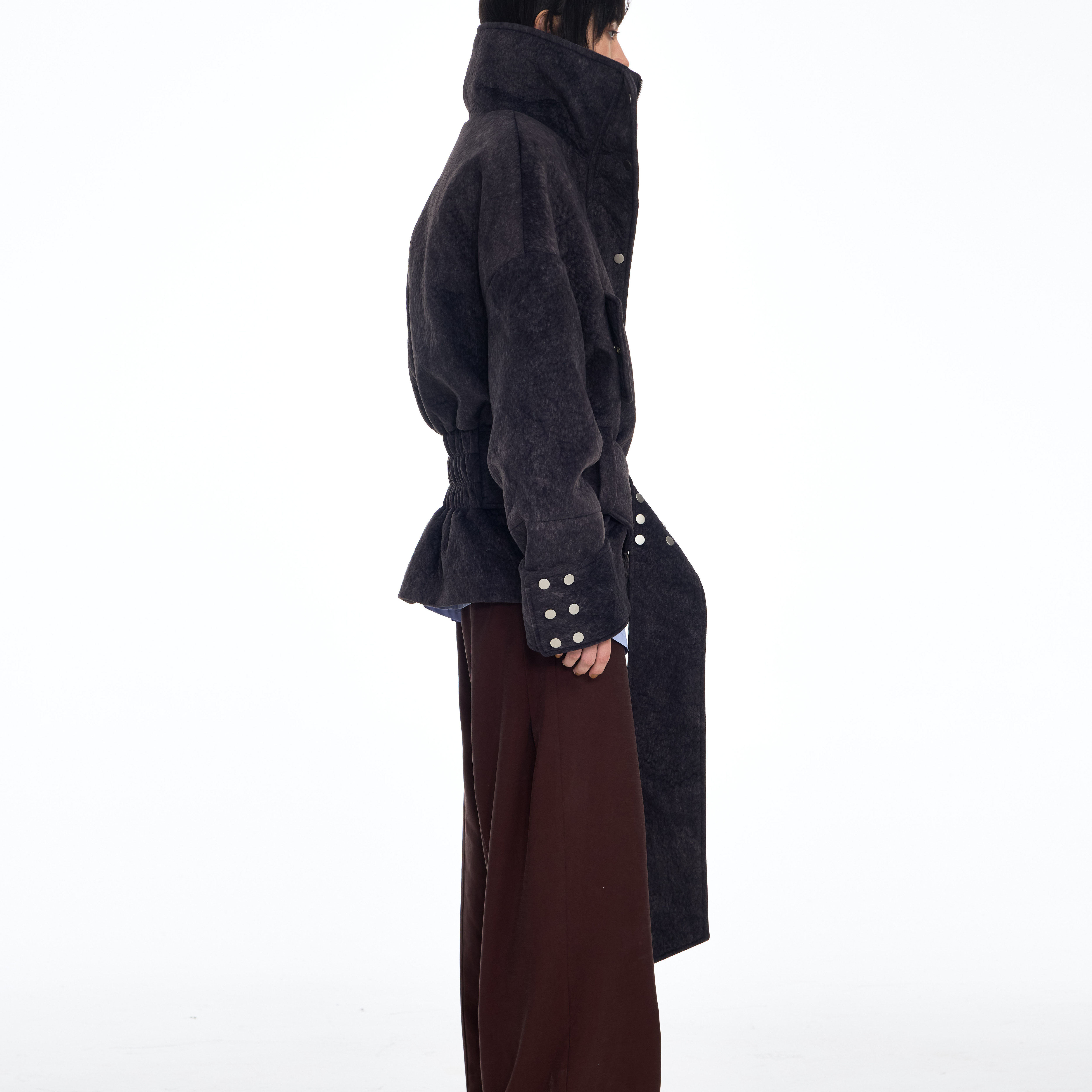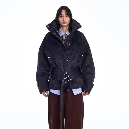 DONOTDISTURB原创解构落肩拼接腰带铆钉阔型夹克棉外套男女同款