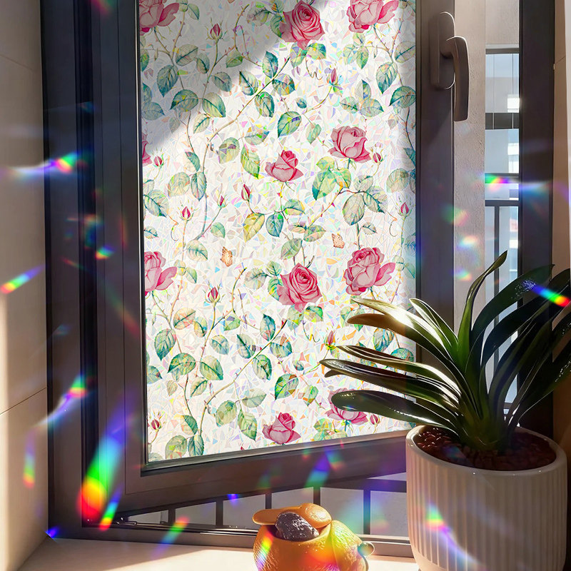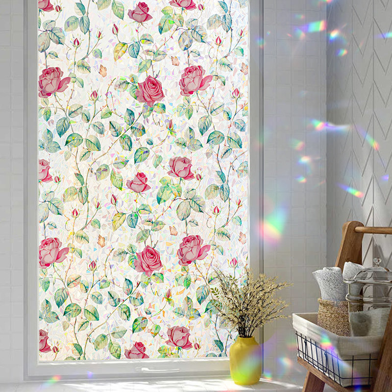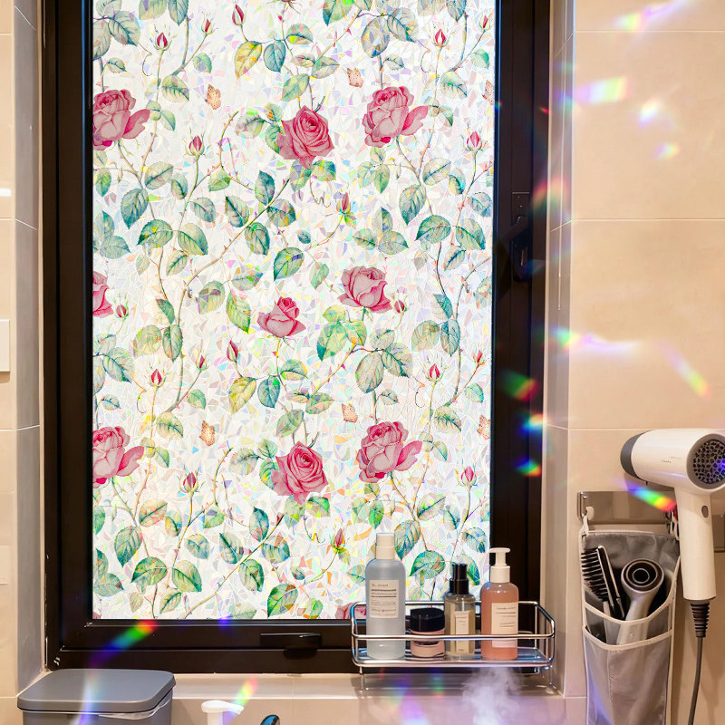【彩虹玫瑰花】玻璃贴纸法式透光不透明卫生间窗户防窥膜浴室彩色