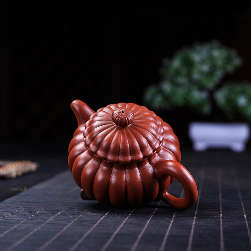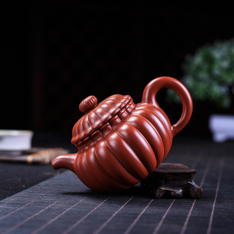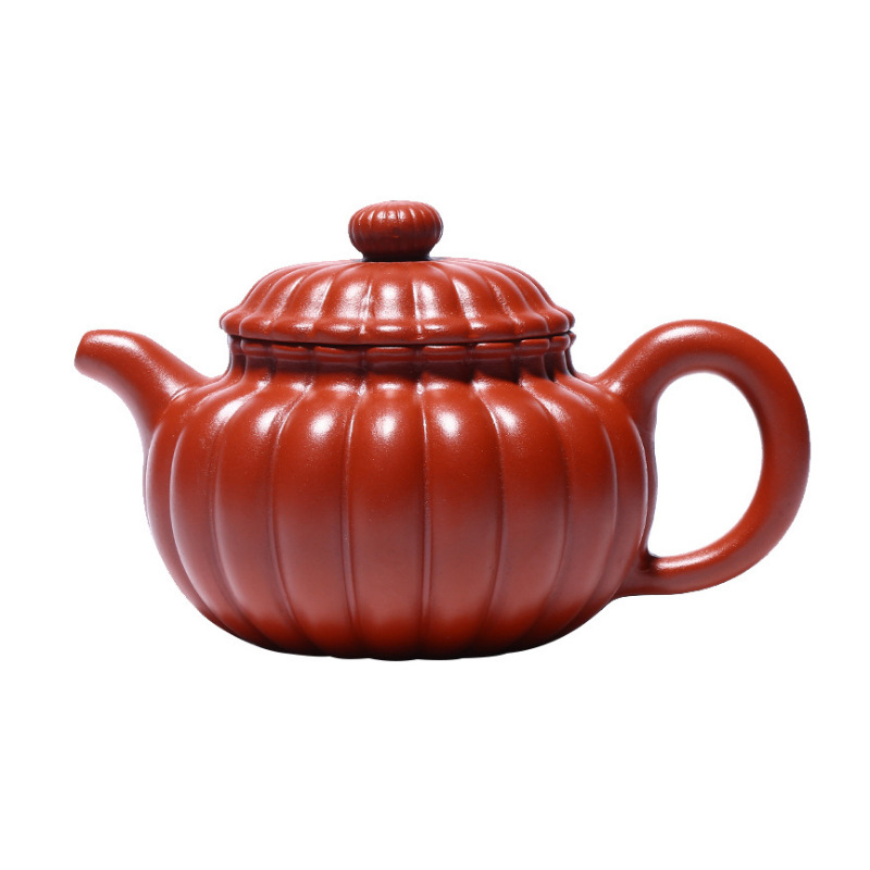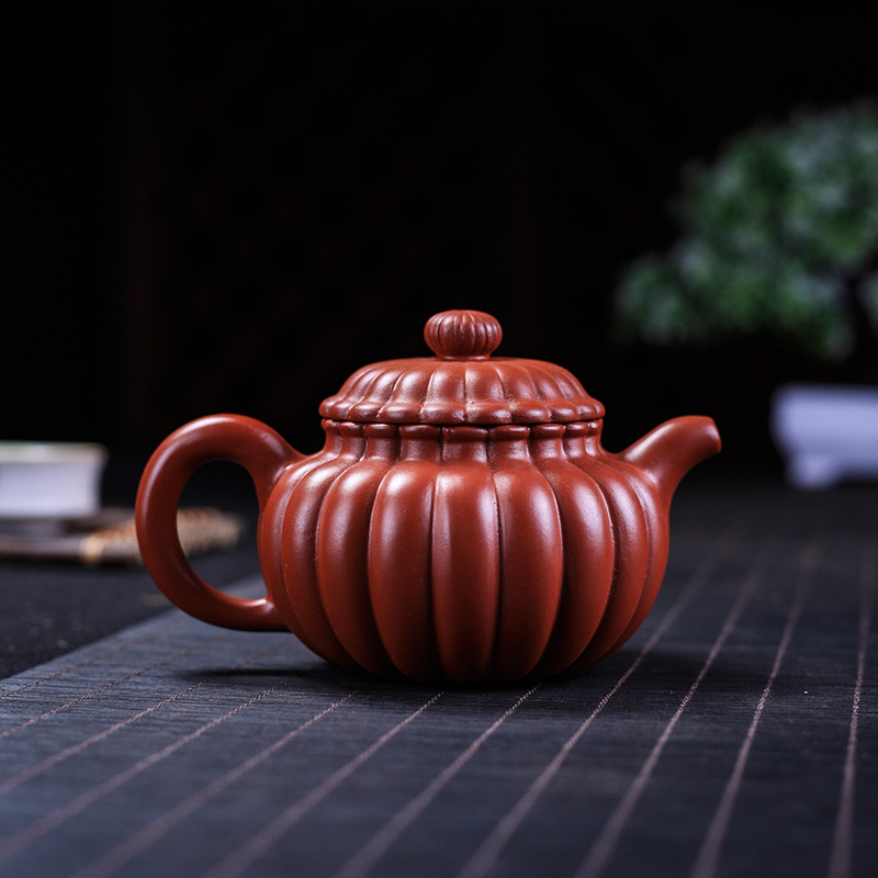 一件宜兴合菱紫砂壶原矿大红袍手工制作茶壶筋纹壶