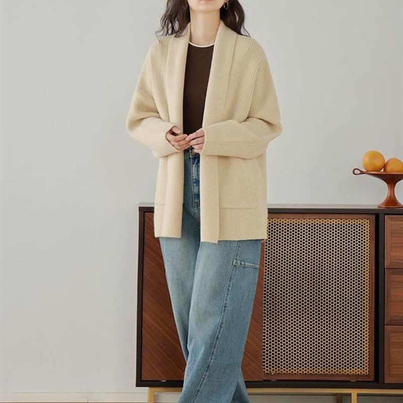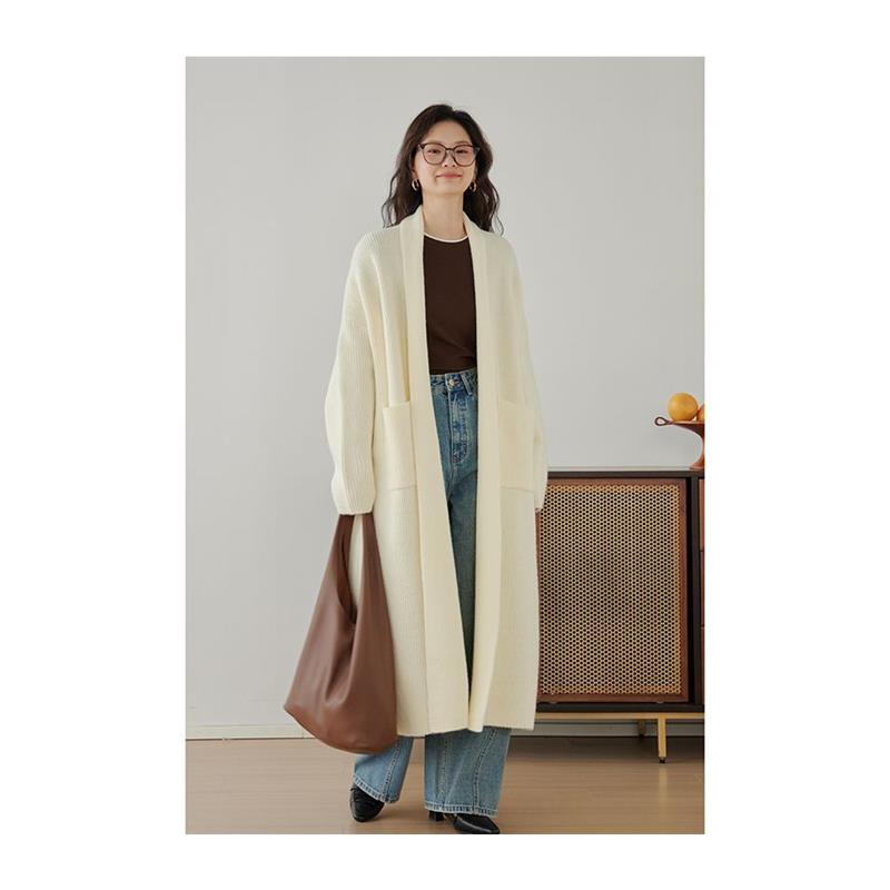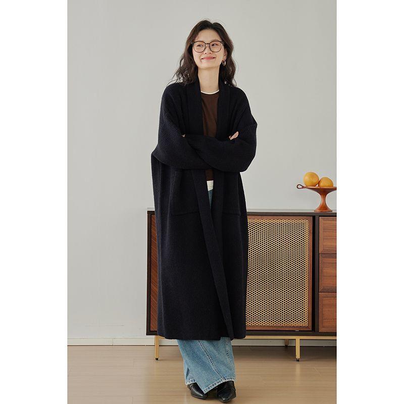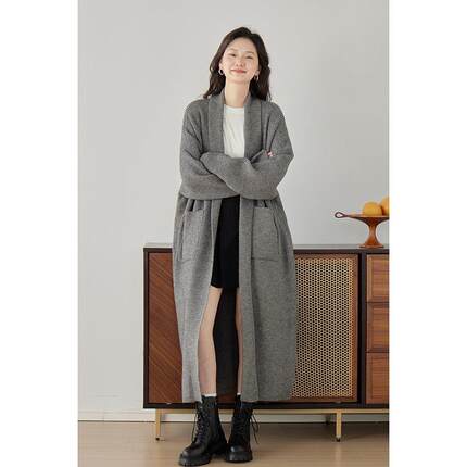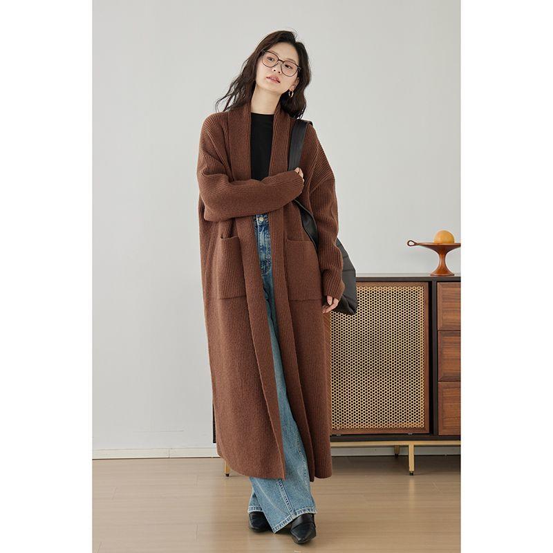 针织外套女宽松上衣毛衣开衫中长款过膝加大码女装微胖mm慵懒高级