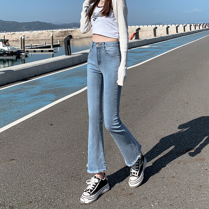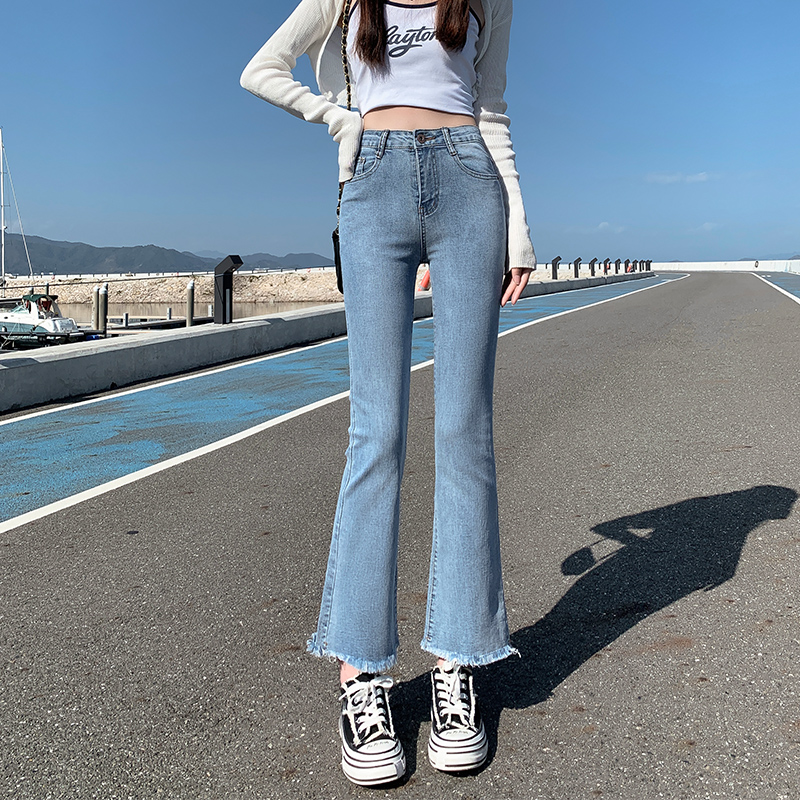 高腰微喇牛仔裤女夏薄2022年新款显瘦八分小个子九分阔腿喇叭裤子