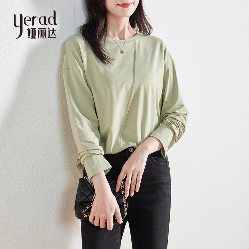 娅丽达小众设计感卫衣女长袖圆领拼接上衣2021秋新款宽松大码T恤
