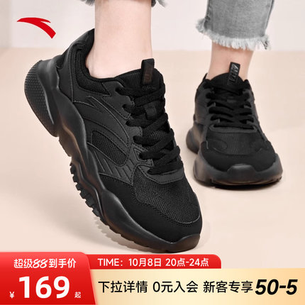 安踏黑色运动鞋女鞋2025新款秋季鞋子纯黑女款透气不累脚休闲鞋女