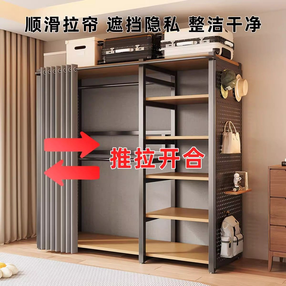 洞洞板衣柜家用卧室落地挂衣架简易组装金属置物开放式防尘衣帽架