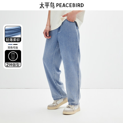 【天丝牛仔】太平鸟男装牛仔裤夏新薄款直筒复古宽松长裤重磅潮