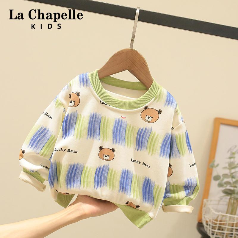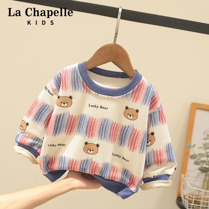 拉夏贝尔童装男童卫衣加绒新款秋冬款宝宝洋气上衣儿童秋装T恤潮