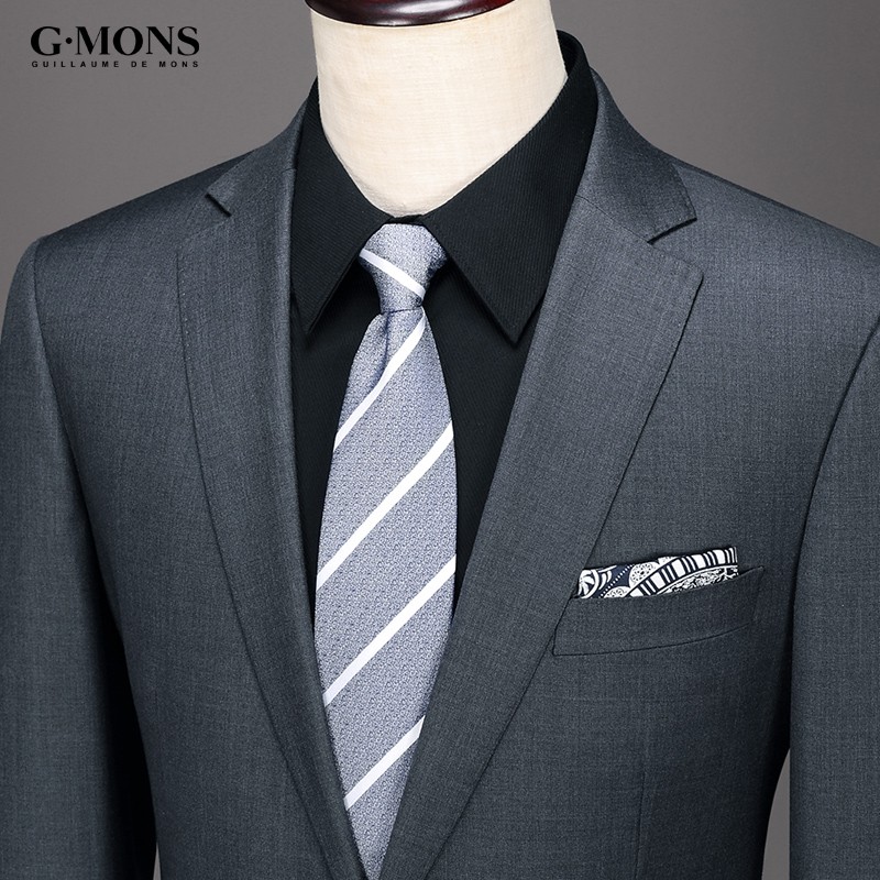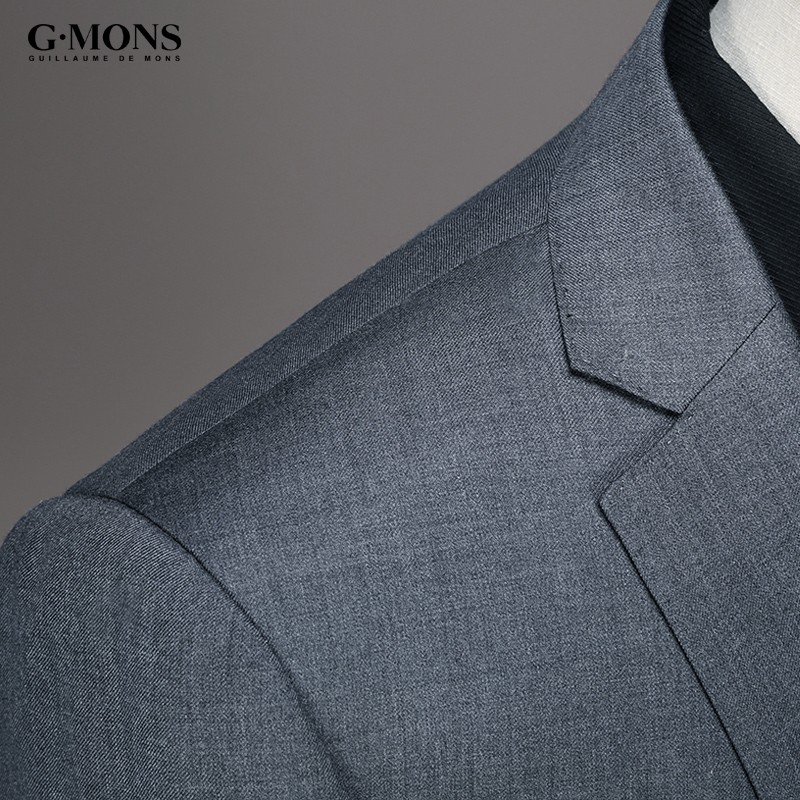 纯羊毛商务正装西装男外套修身上衣灰色新郎结婚礼服男士西服套装