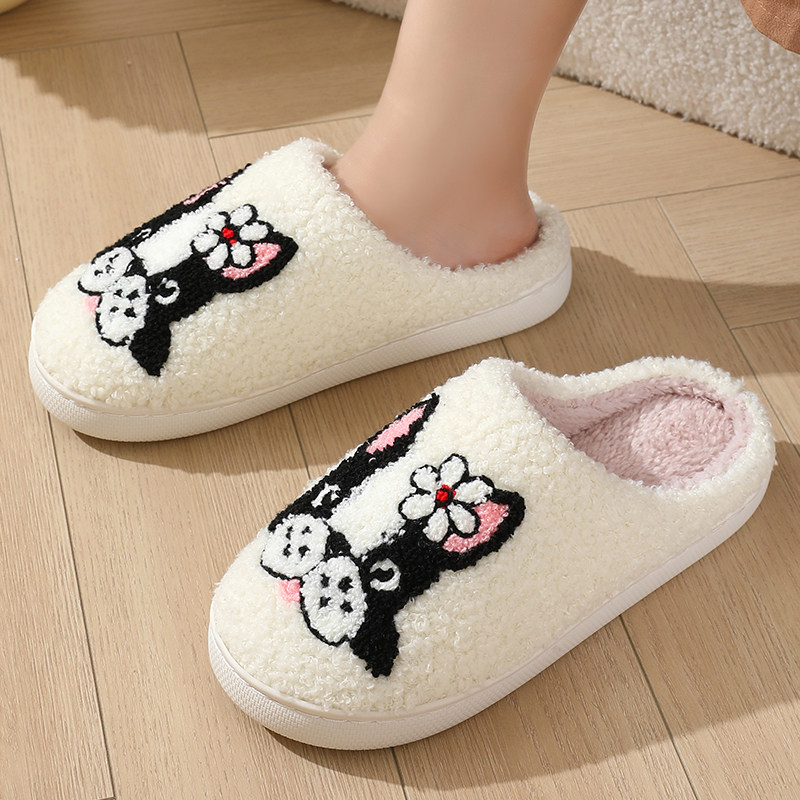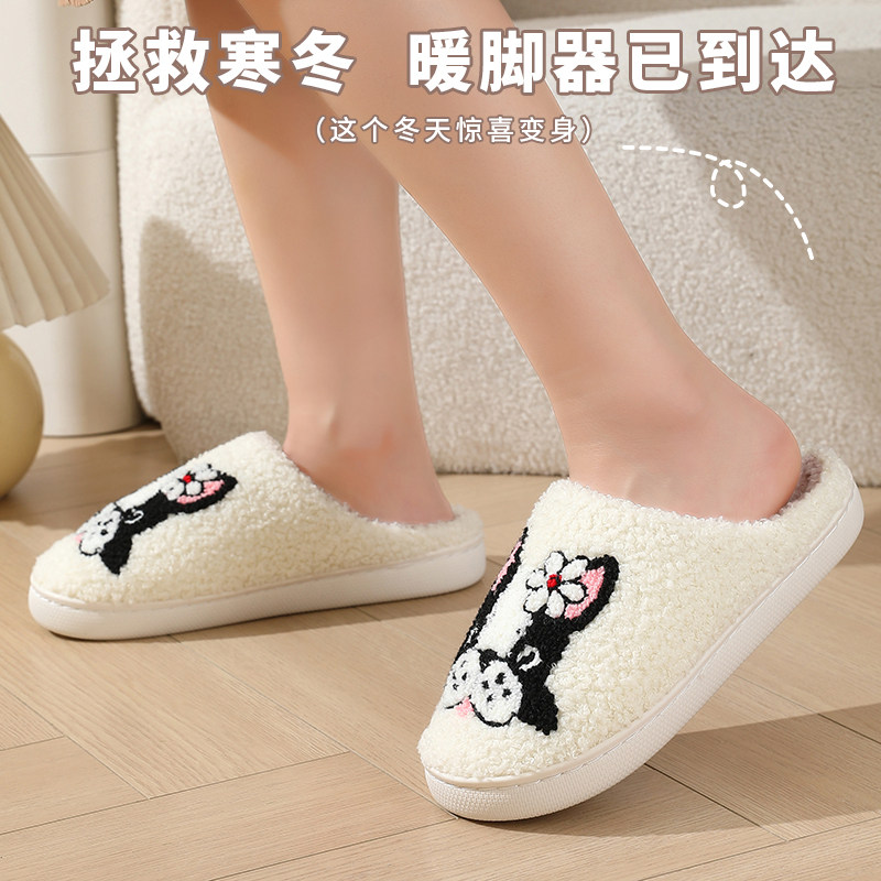 新款舒适居家可爱卡通小花狗冬季棉拖鞋男女情侣款厚底保暖棉拖鞋