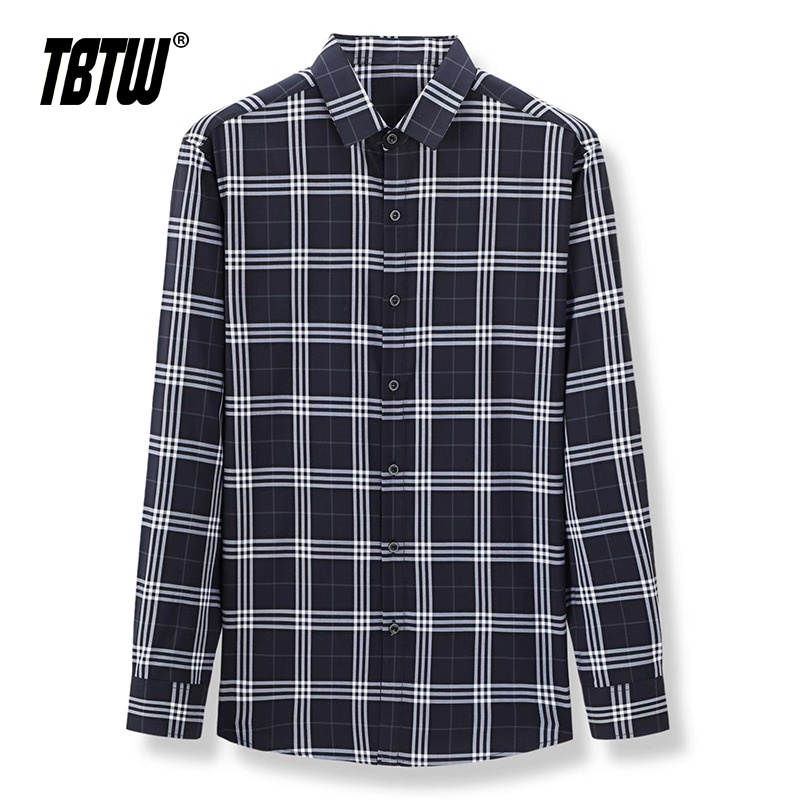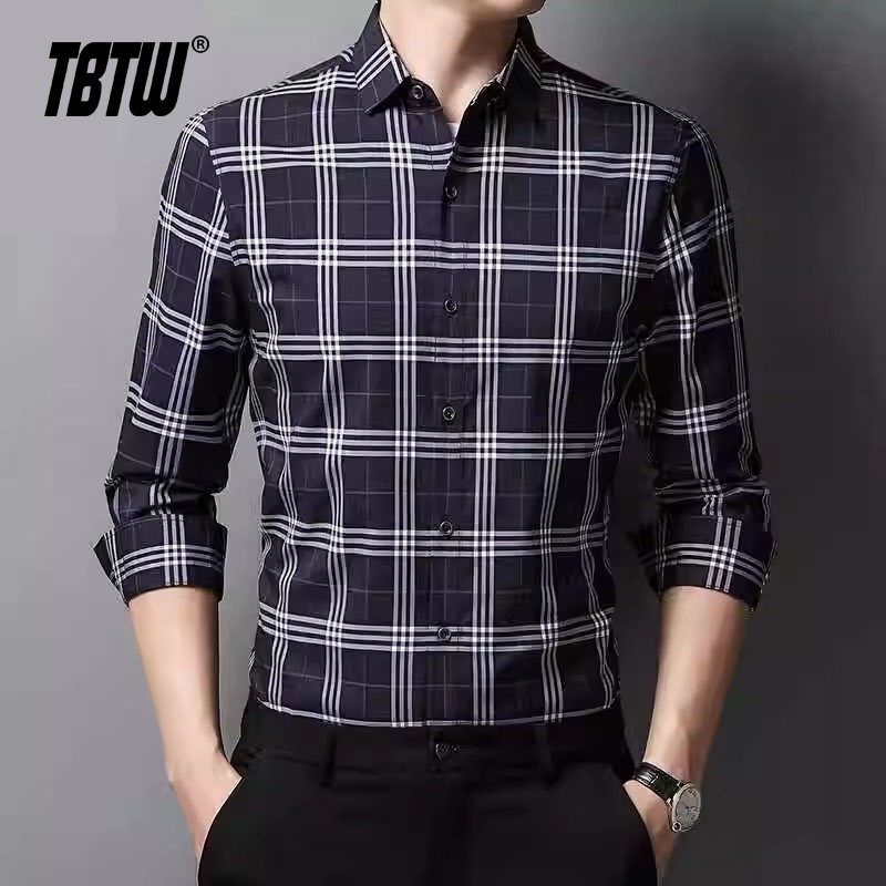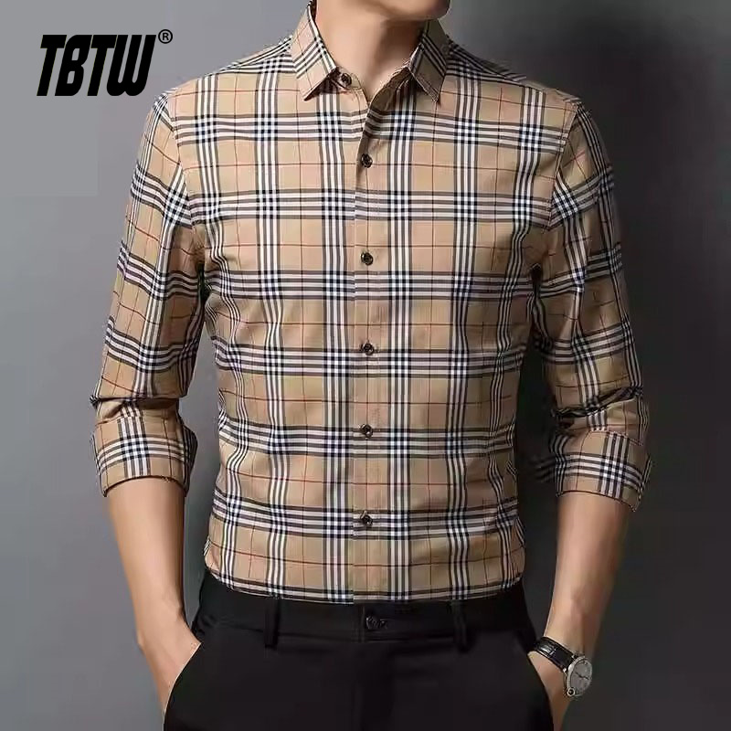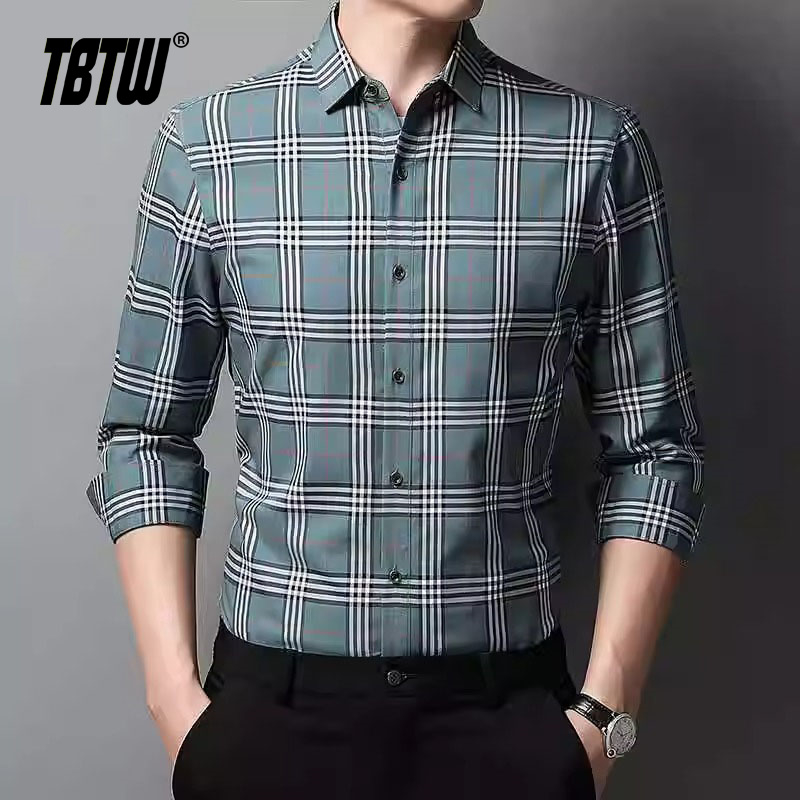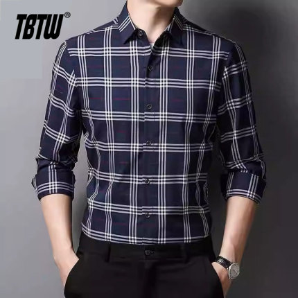 TBTW长袖衬衫男士2025春夏季薄款休闲商务格子中年高级感衬衣免烫