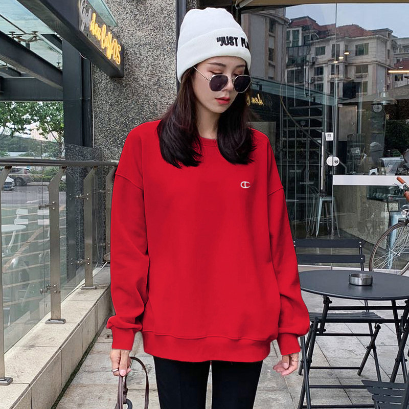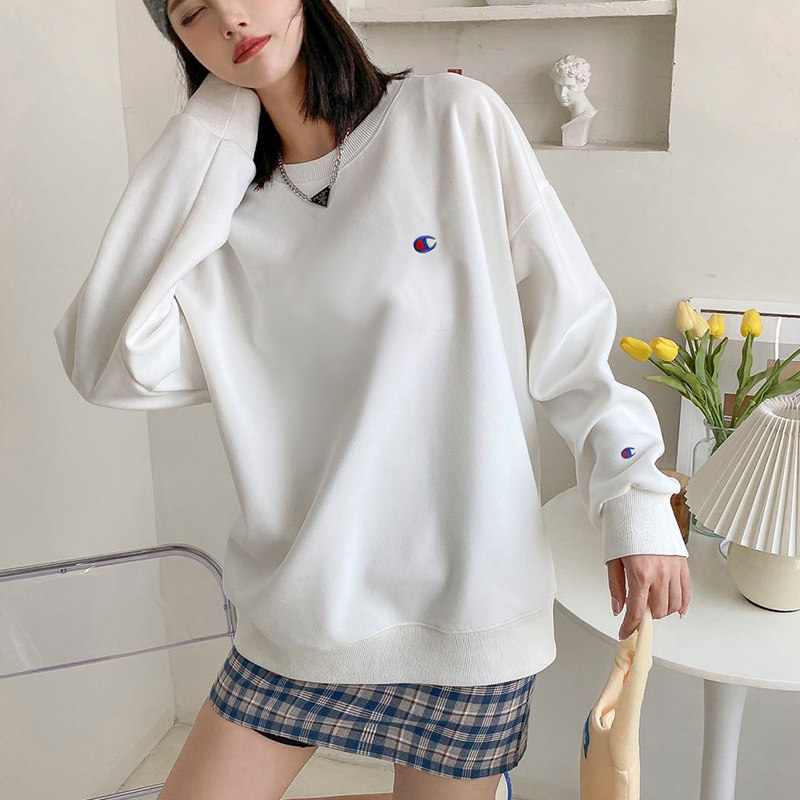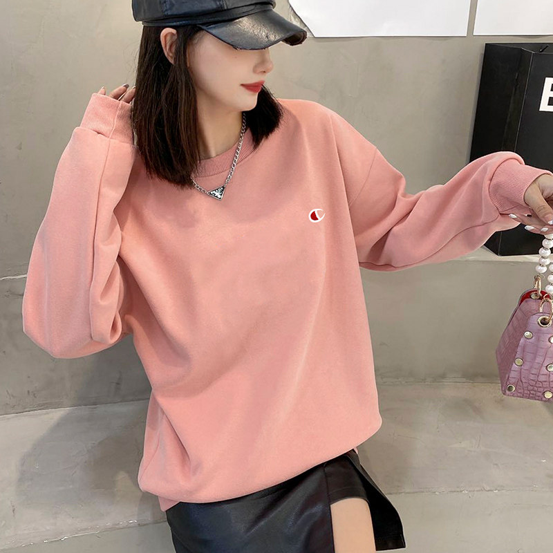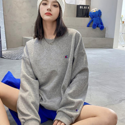 春秋潮牌刺绣卫衣女长袖圆领宽松纯棉T恤青年学生内搭情侣打底衫