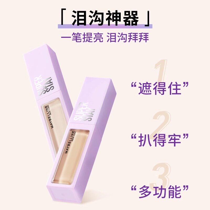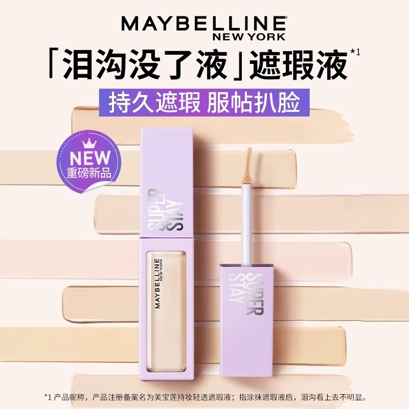 美宝莲泪遮瑕液粉底液眼唇卸妆液自然高光提亮遮瑕持久女官方正品