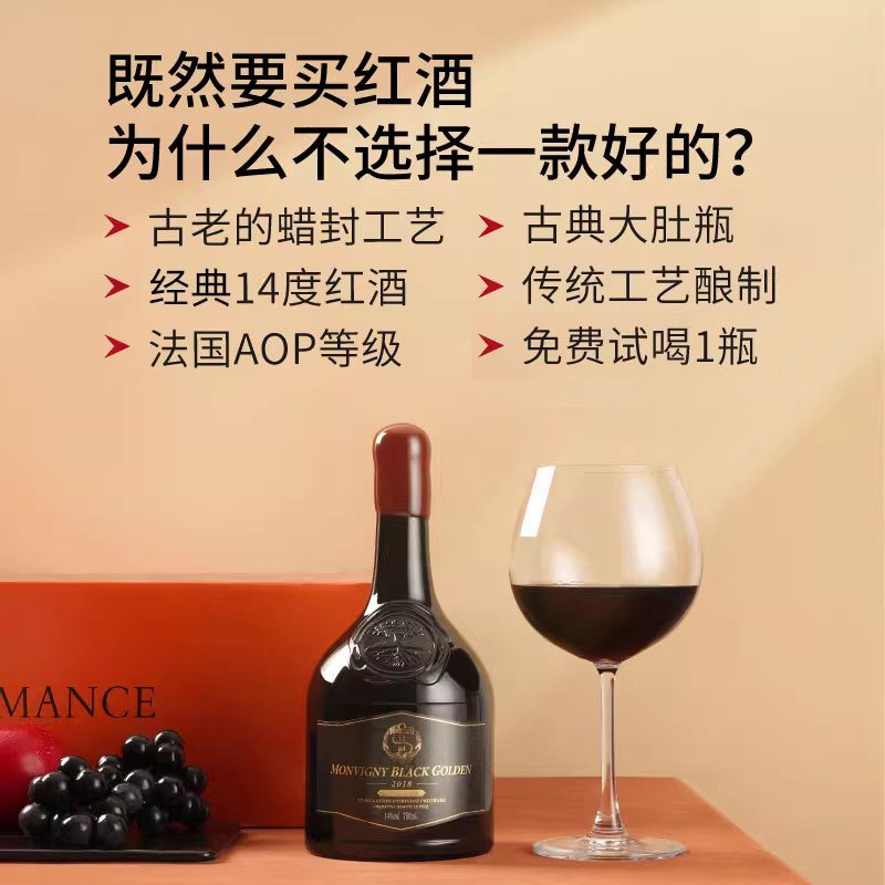 买一箱送一箱法国进口14度蜡封红酒整箱赤霞珠干红葡萄酒XO白兰地