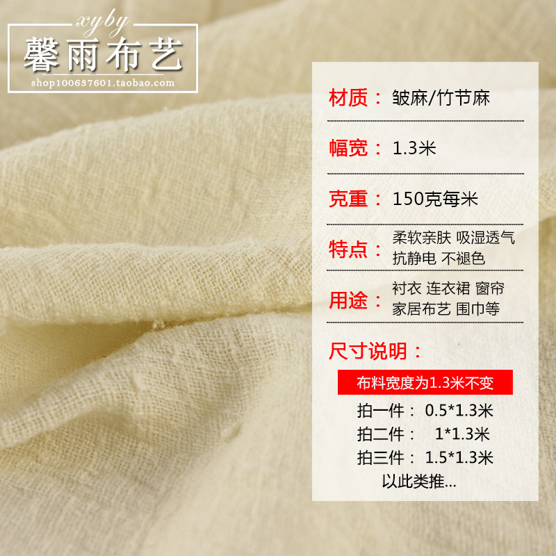 棉麻 中国风 素色竹节肌理褶皱棉麻布料 夏季纯色衬衫连衣裙面料