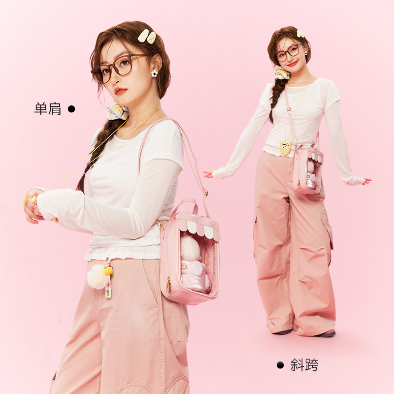 WEGO CAFE斜跨娃包10cm外出透明pvc装娃娃挂包斜肩娃痛包