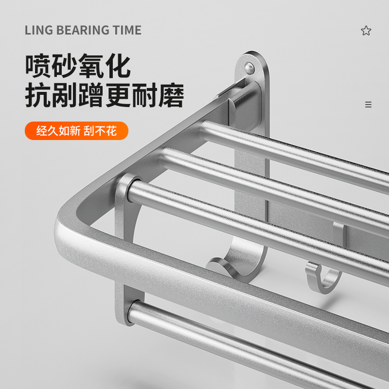 浴巾架太空铝卫生间五件套免w打孔奶油风置物架卫浴五金挂件毛巾