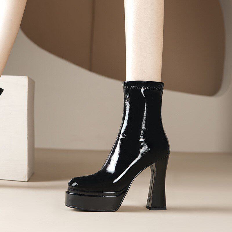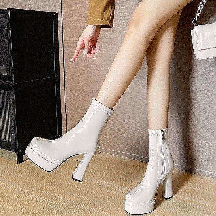 白色瘦瘦靴初秋冬女靴子粗跟小个子2025新款防水台高跟不累脚短靴