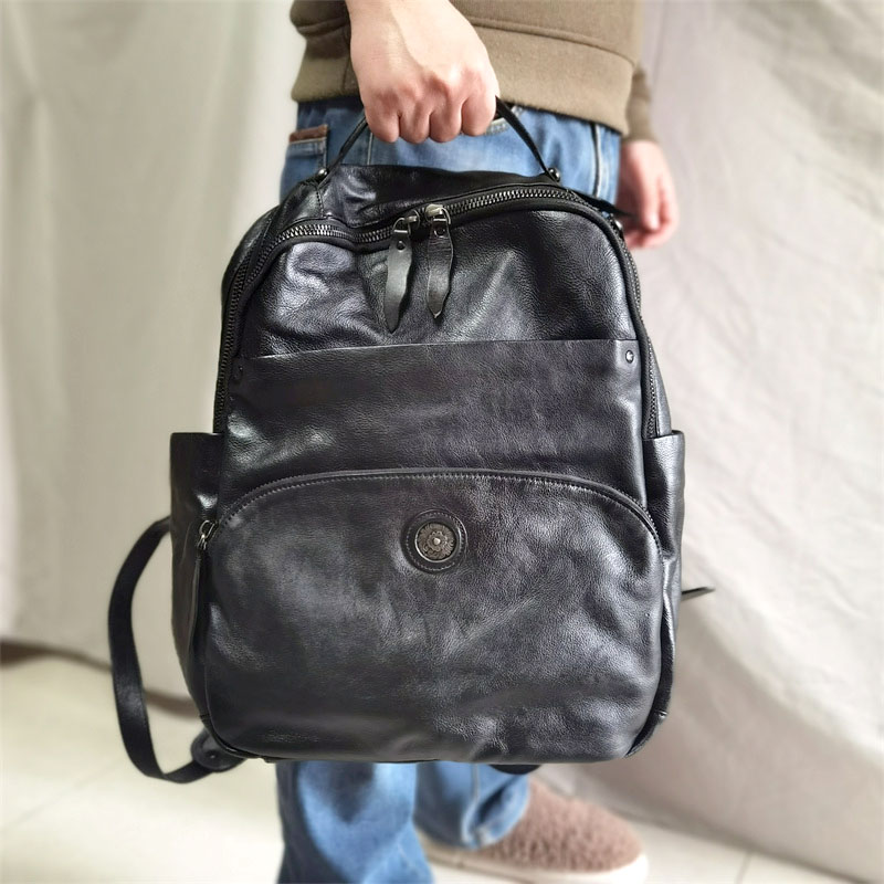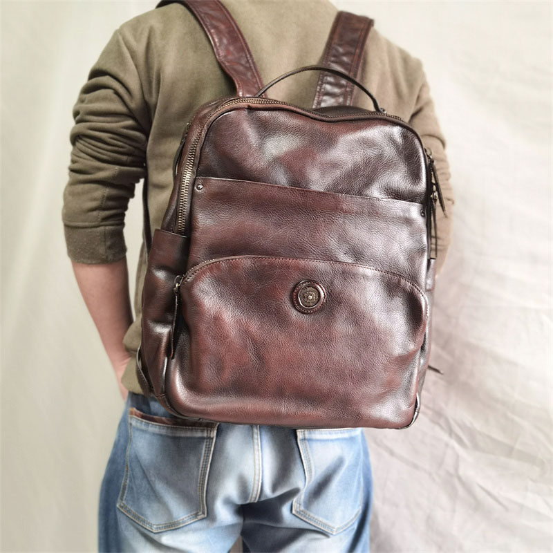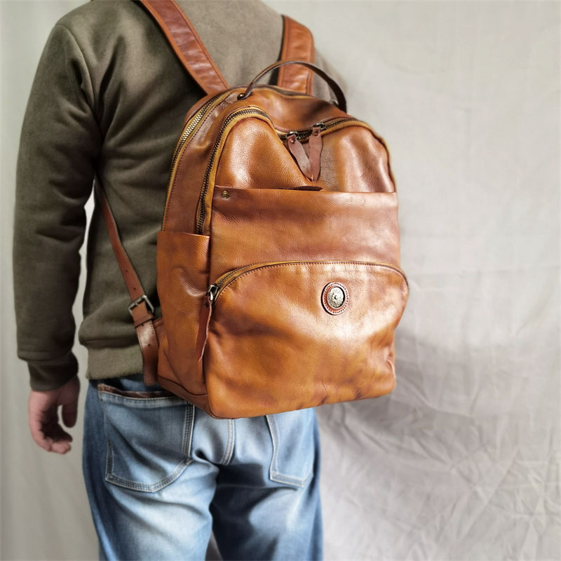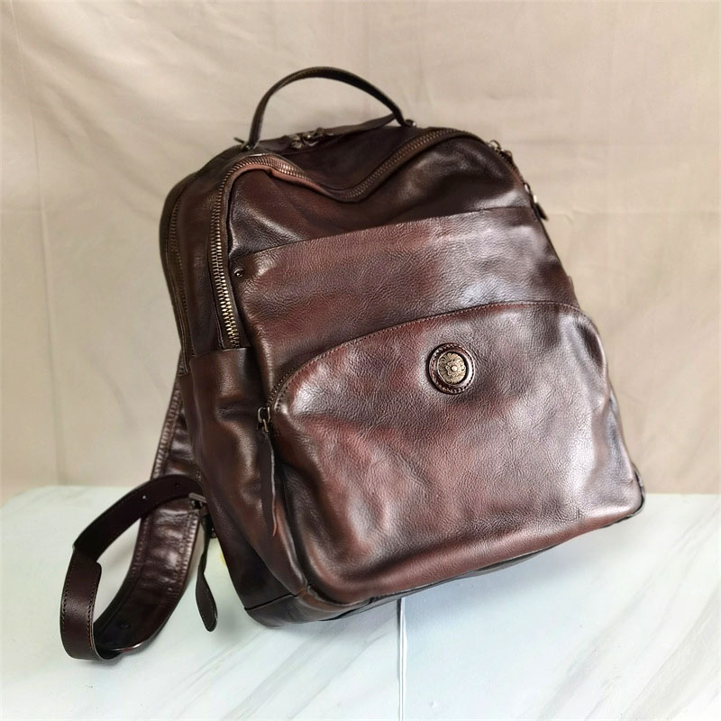 复古植鞣牛皮双肩包背包大容量耐用男士真皮双肩包男士旅行包帅气