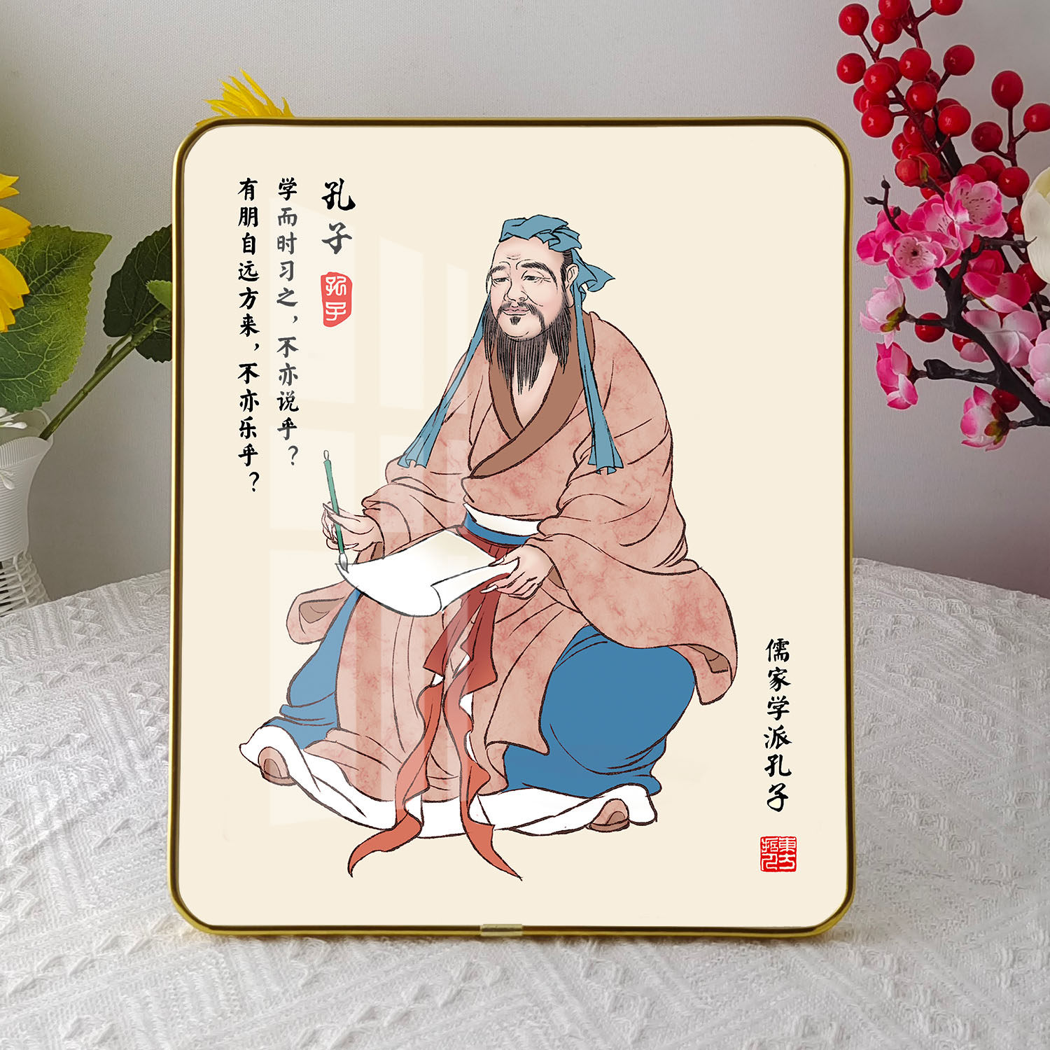 孔子画像学生励志摆台相框书房书桌摆件儿童房字画孔夫子像装饰画