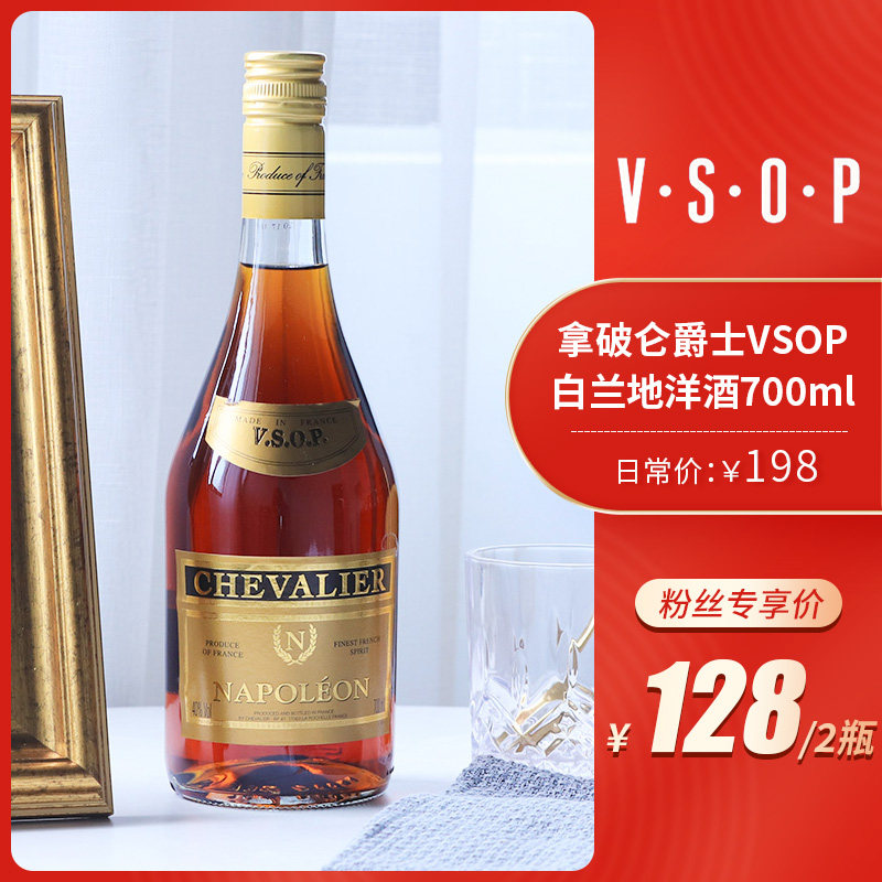 【2支装】官方正品 法国原瓶进口洋酒拿破仑爵士白兰地VSOP40度