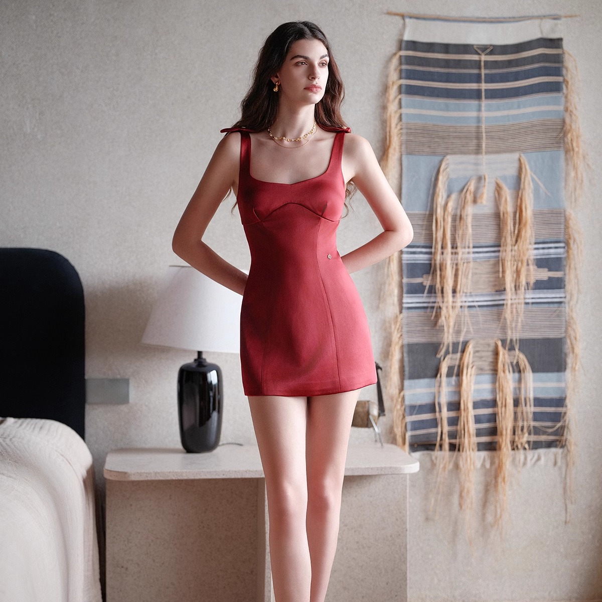 Sheer Luck Pebble 优雅法式短款蝴蝶结吊带连衣裙