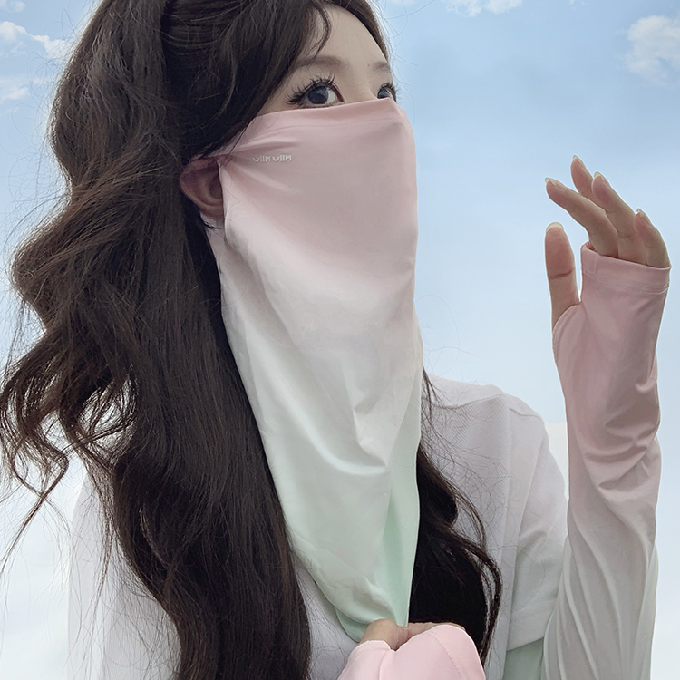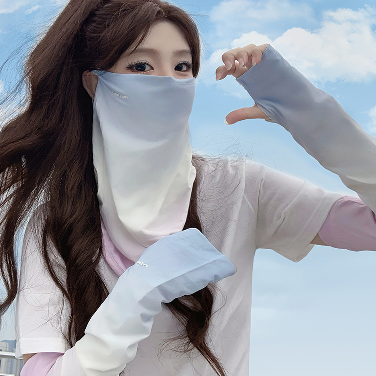 高颜值渐变防晒冰袖女夏季防紫外线手套户外透气冰丝袖套骑行面罩