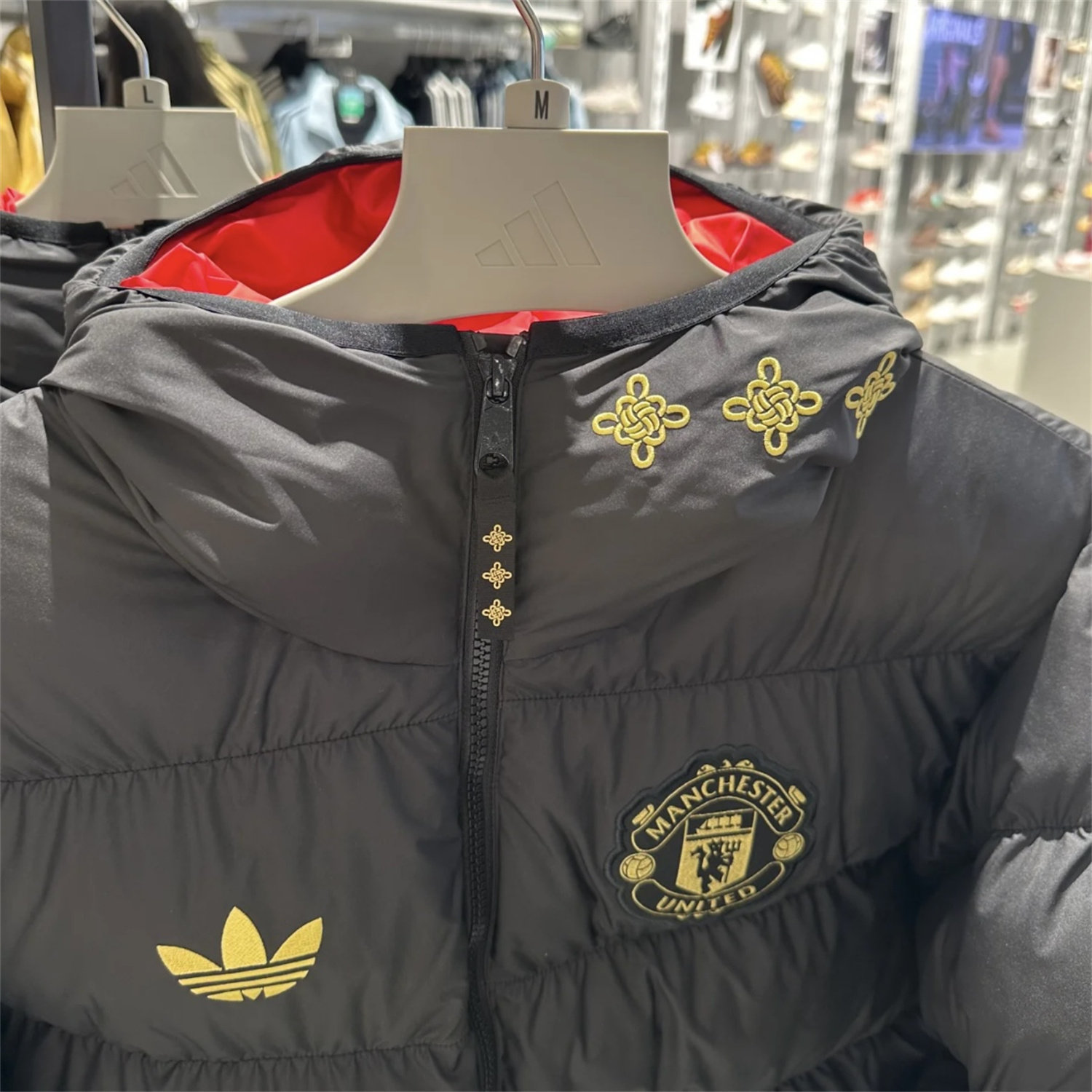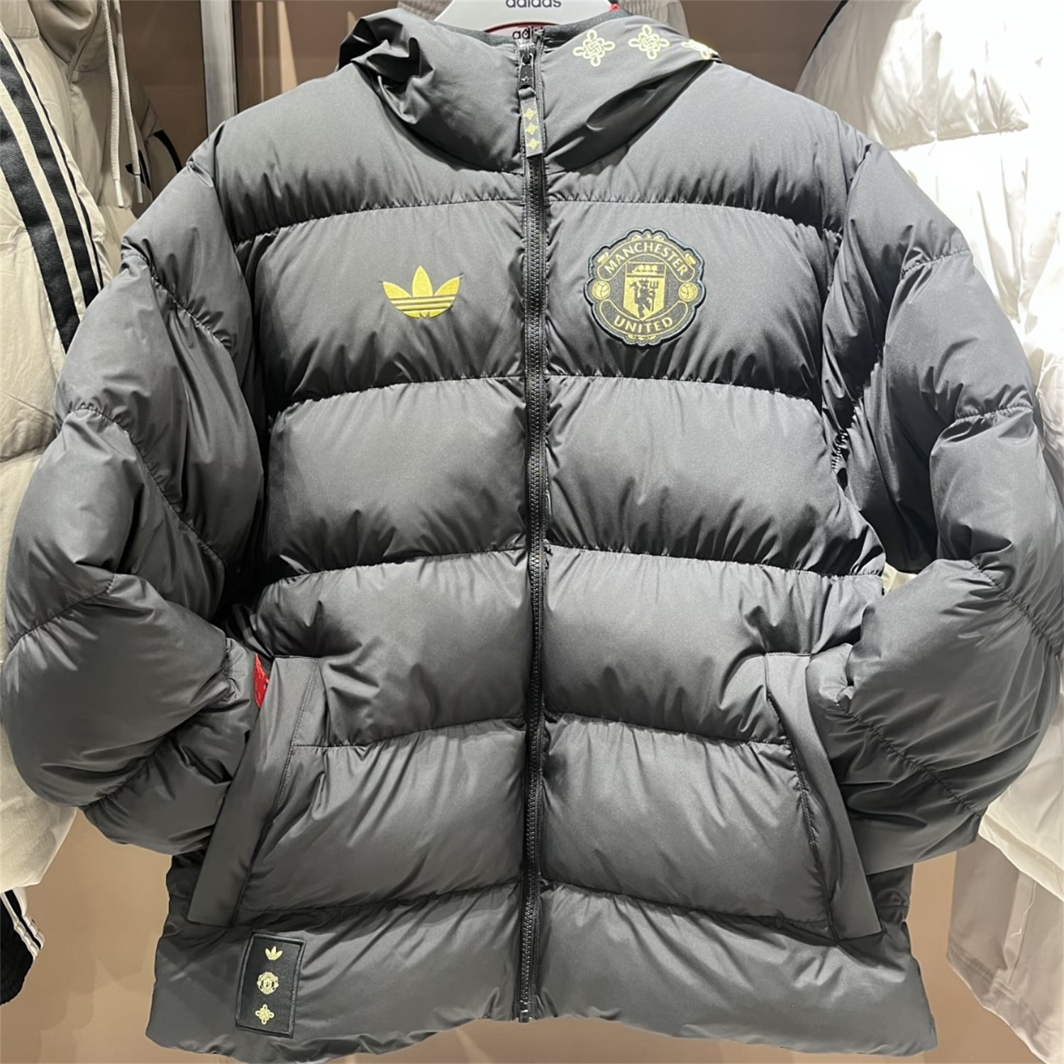 Adidas三叶草 曼联中国年限定运动休闲足球连帽棉服外套 JM5567