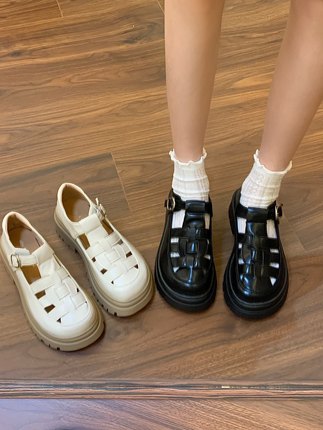 编织罗马包头凉鞋女2025秋季季新款猪笼鞋英伦风松糕厚底休闲单鞋