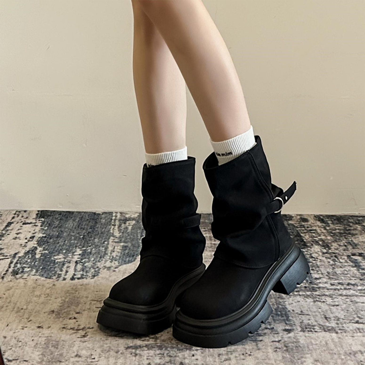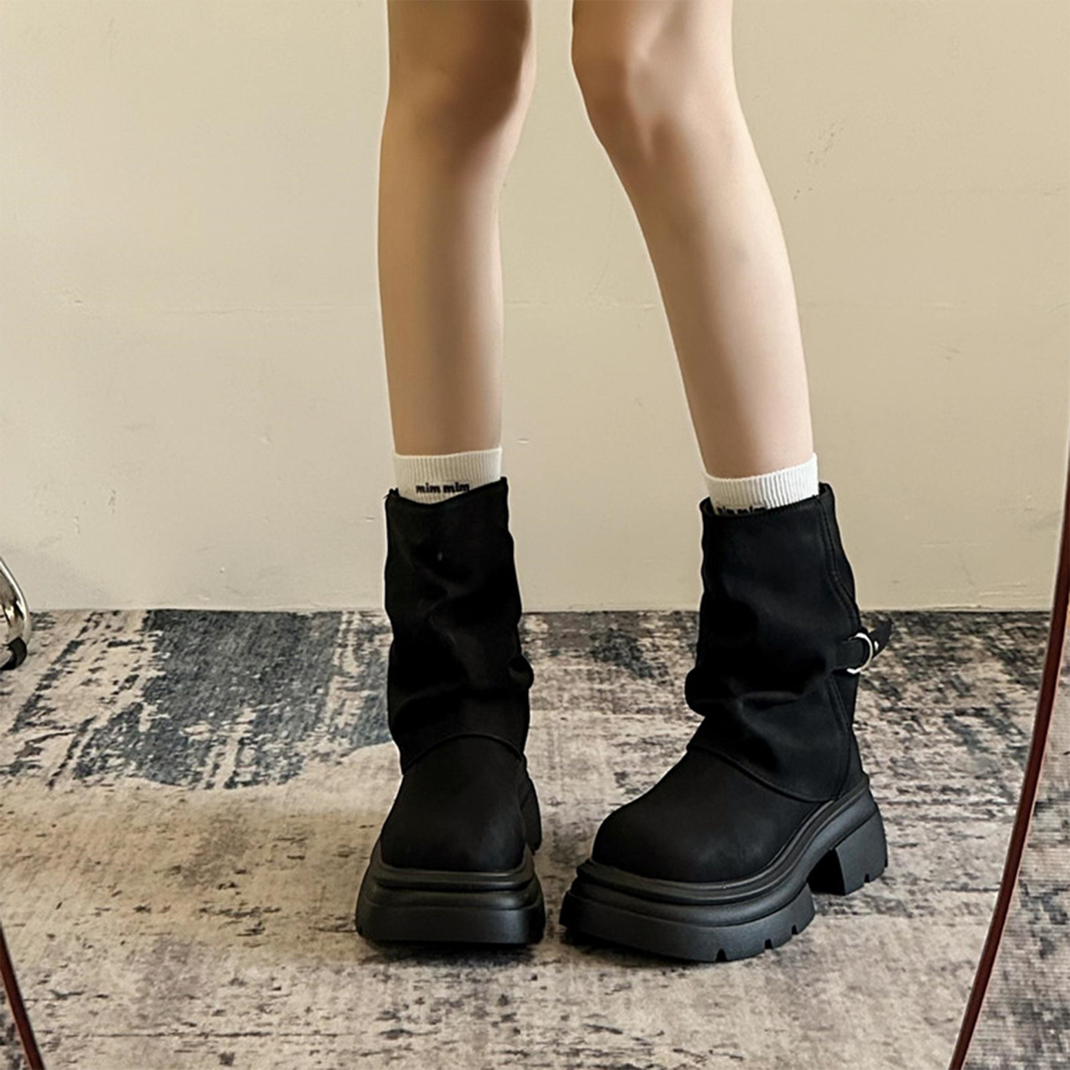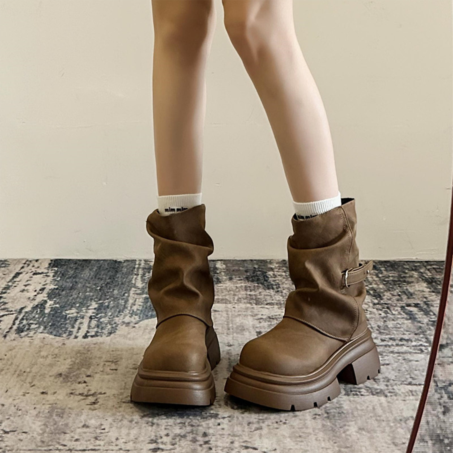 厚底棕色堆堆靴西部牛仔短靴子女2025新款秋季裤管靴美拉德马丁靴