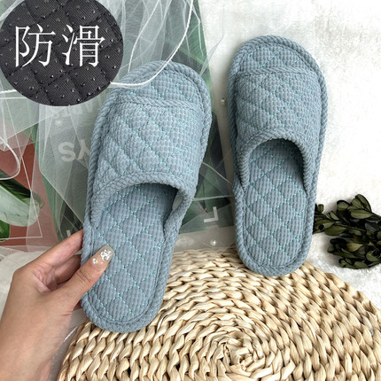 秋冬季家用粒绒布底拖鞋地板静音防滑颗粒毛绒居家棉拖鞋男可机洗