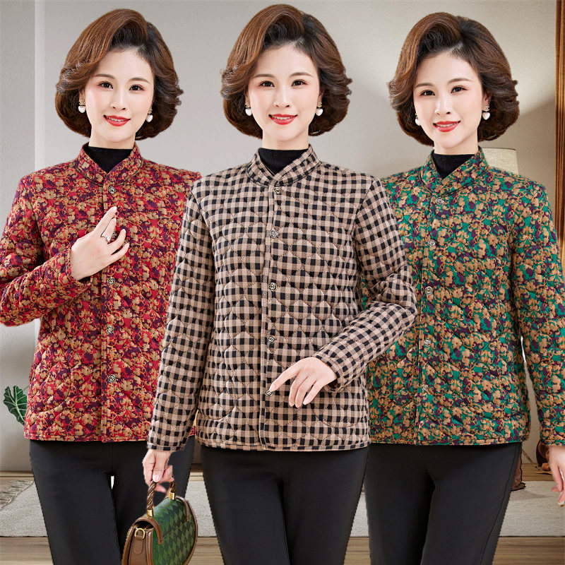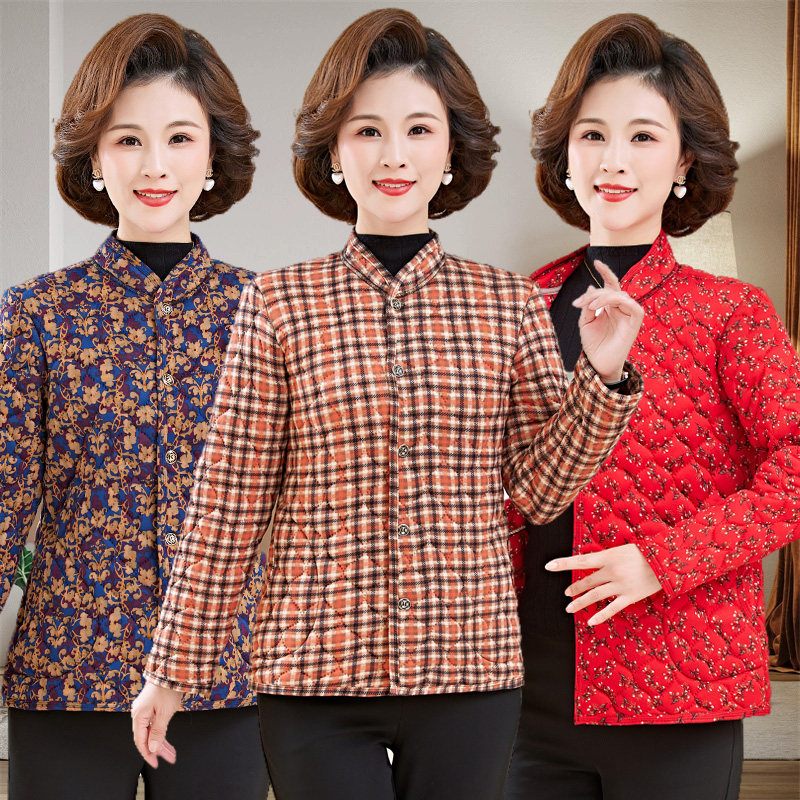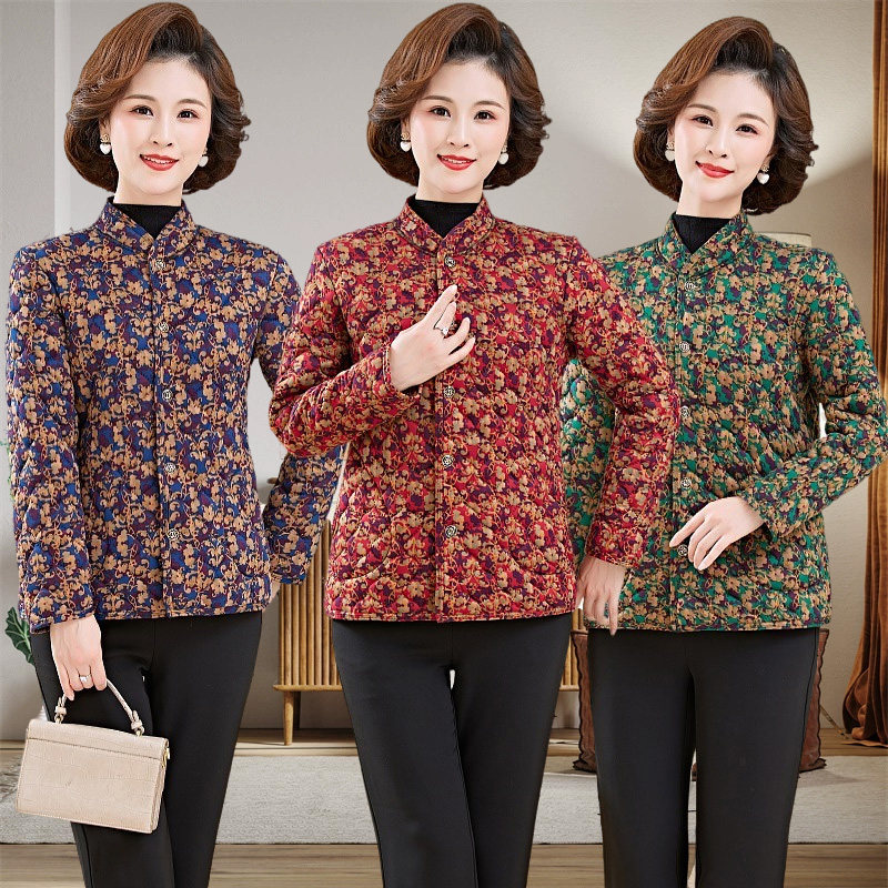 妈妈装丝绒棉衣女短款立领保暖内胆中老年女装时尚小棉袄花色外套