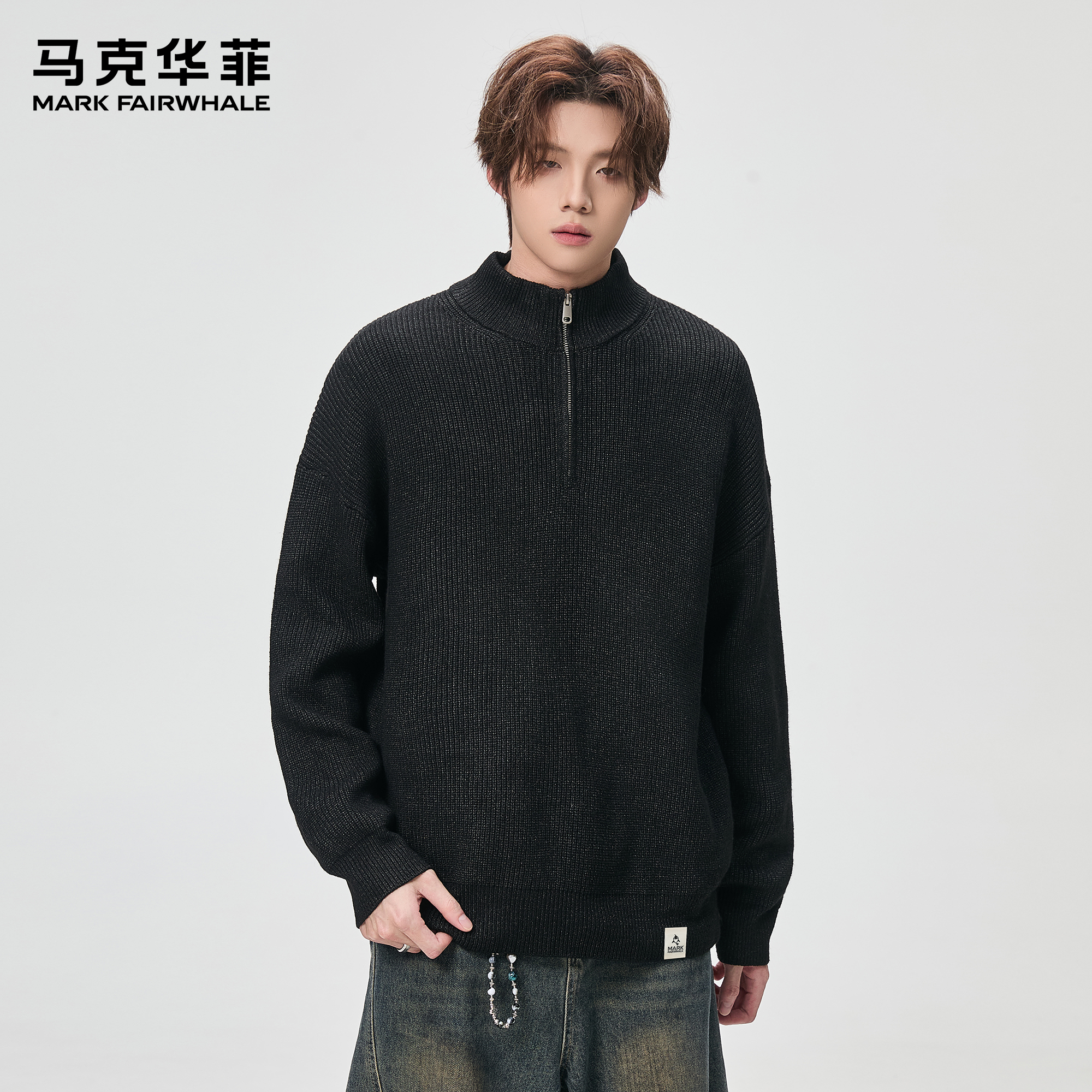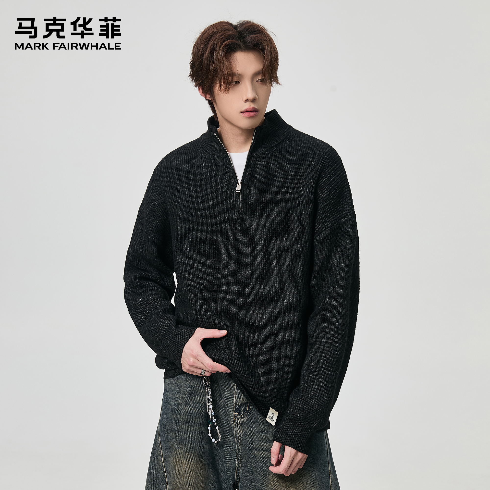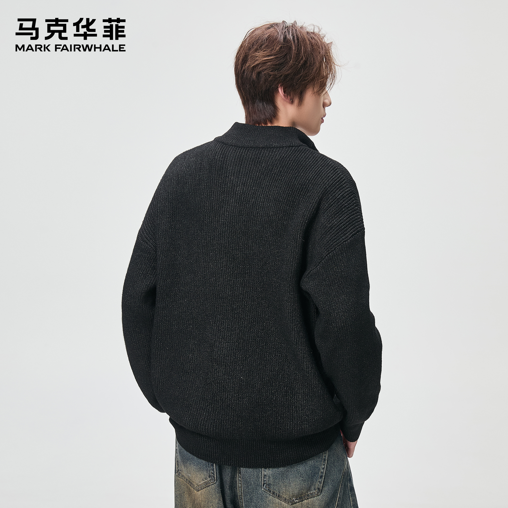 马克华菲半开襟针织衫男士2025新款潮牌美式复古重磅保立领领毛衣