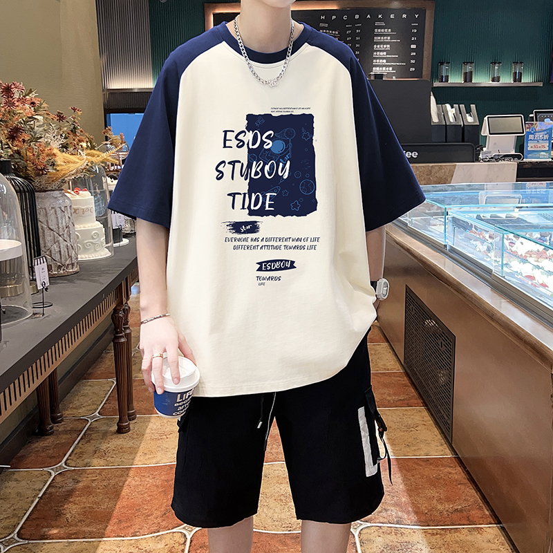 夏季13初高中学生纯棉短袖t恤12-15岁男孩14大童宽松半袖体恤套装