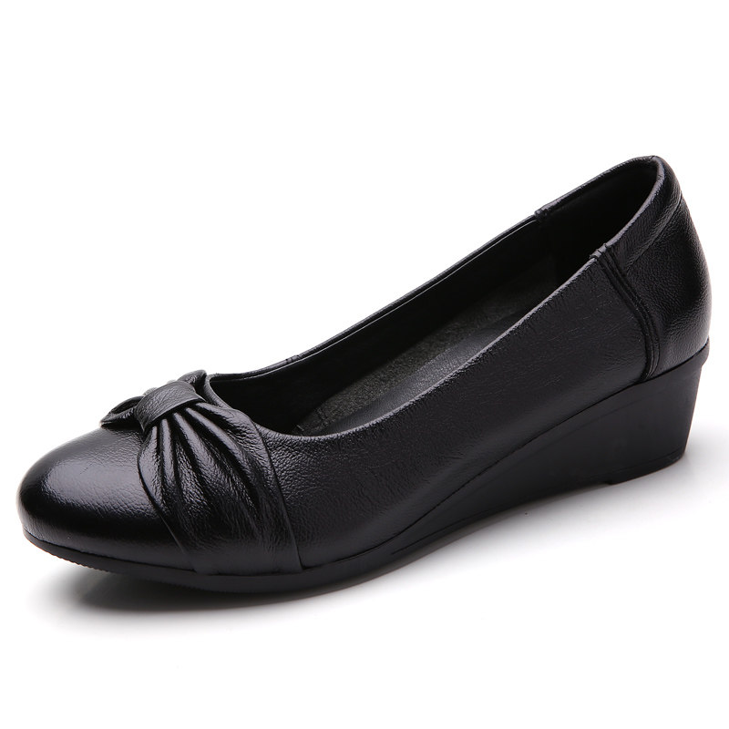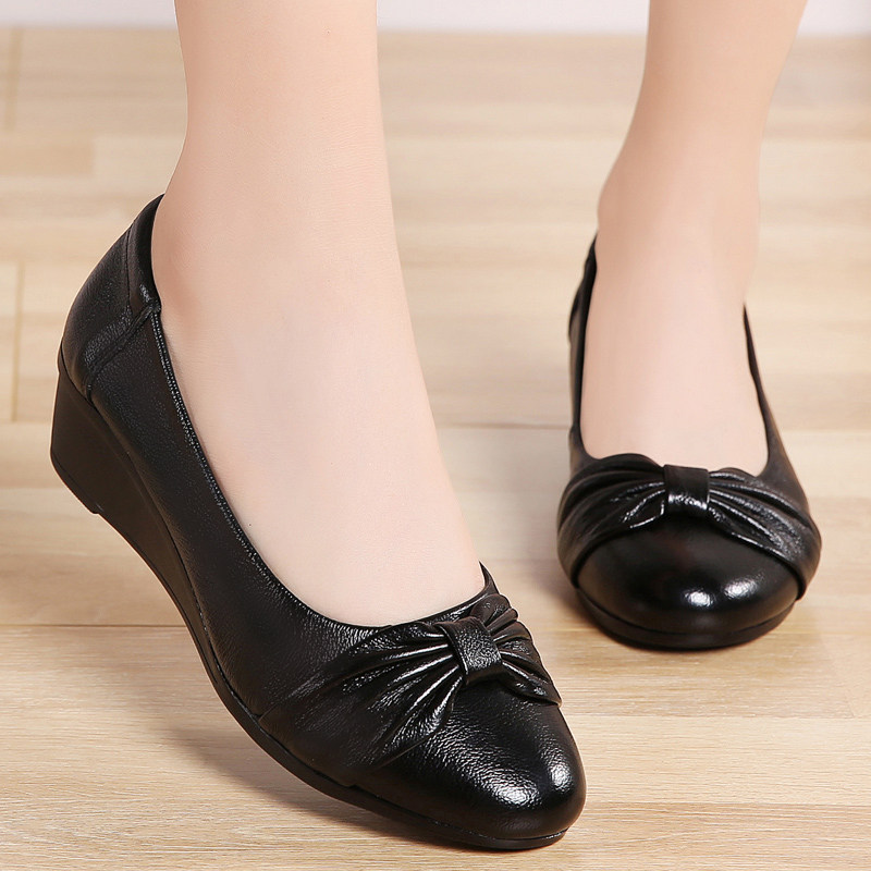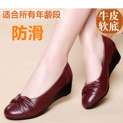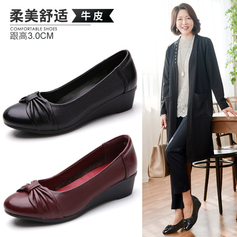 妈妈鞋真皮软底女舒适春秋款中跟单鞋中年女式中老年女鞋坡跟皮鞋