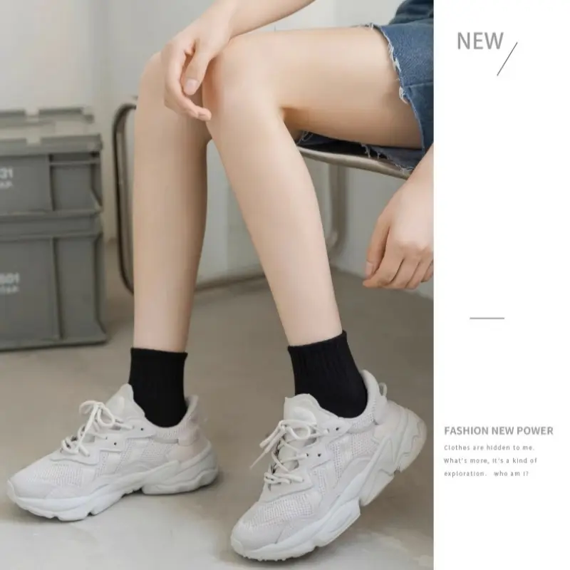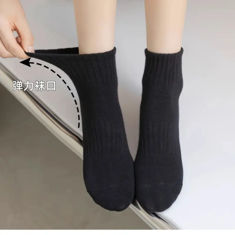 日本无印棉足100%纯棉袜子女全棉防臭运动百搭黑色白色中筒秋冬男